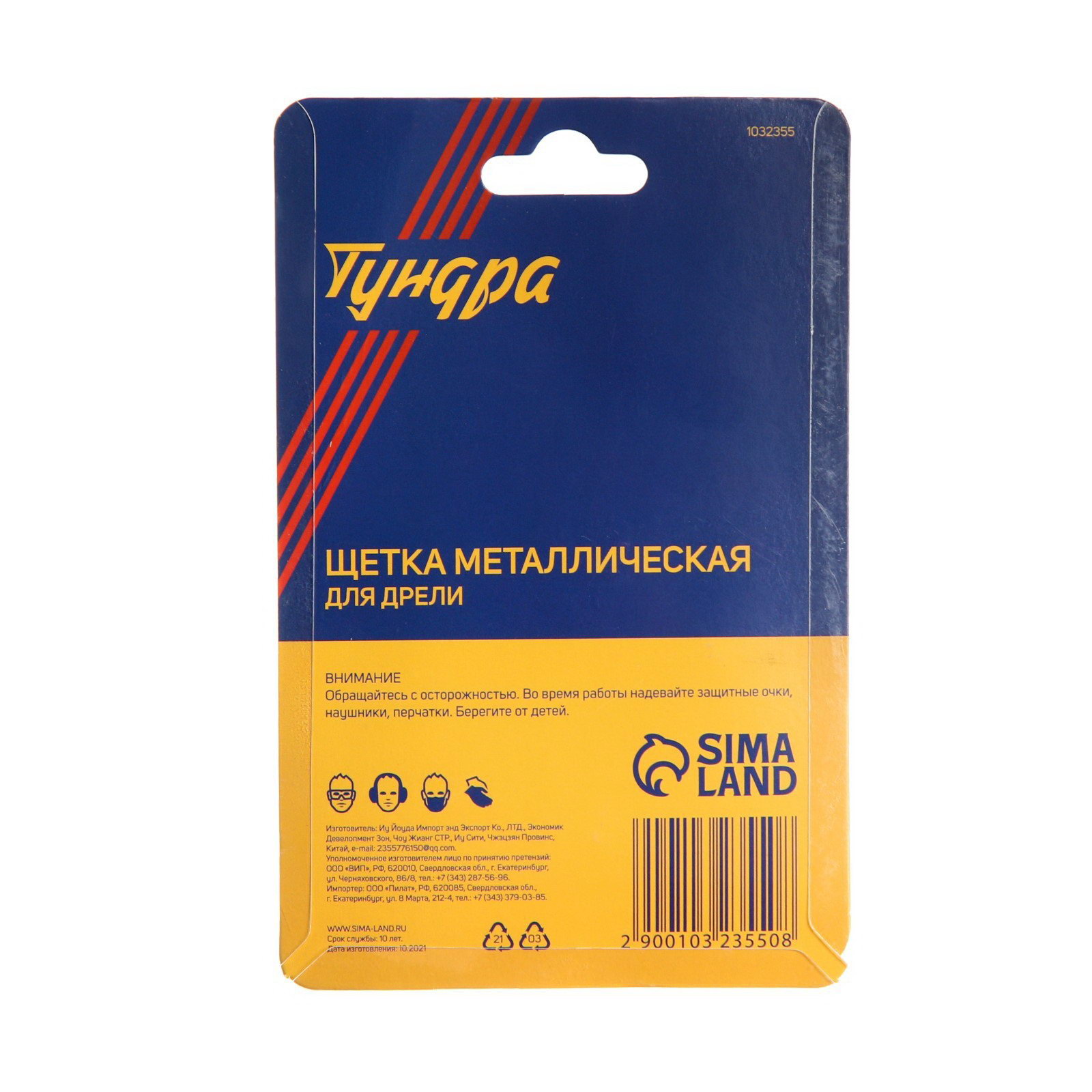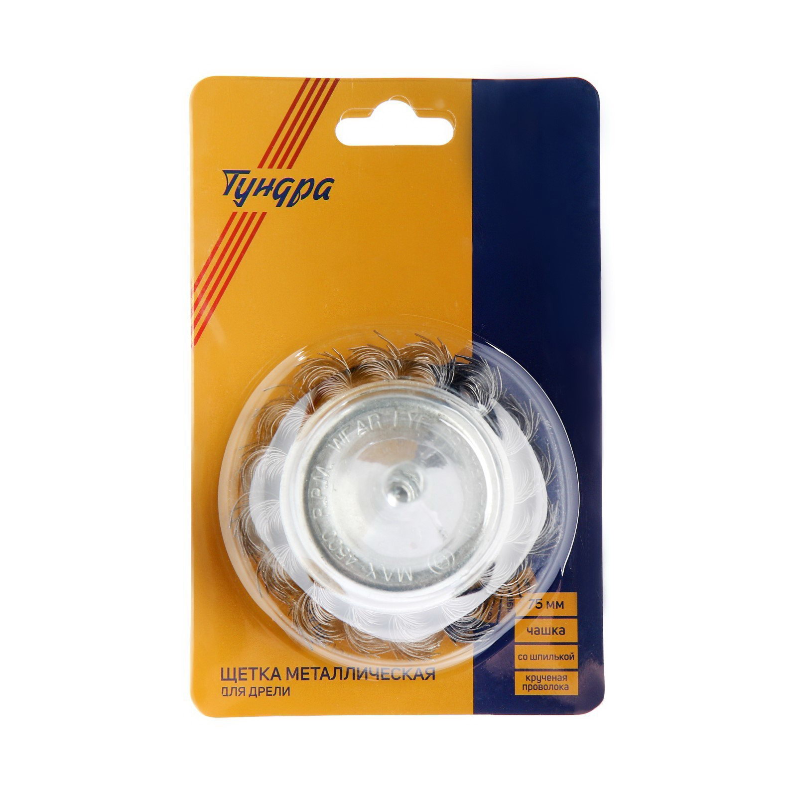 Щетка металлическая для дрели со шпилькой, крученая проволока, "Чашка", 75 мм, 750 см., ТУНДРА, Китай