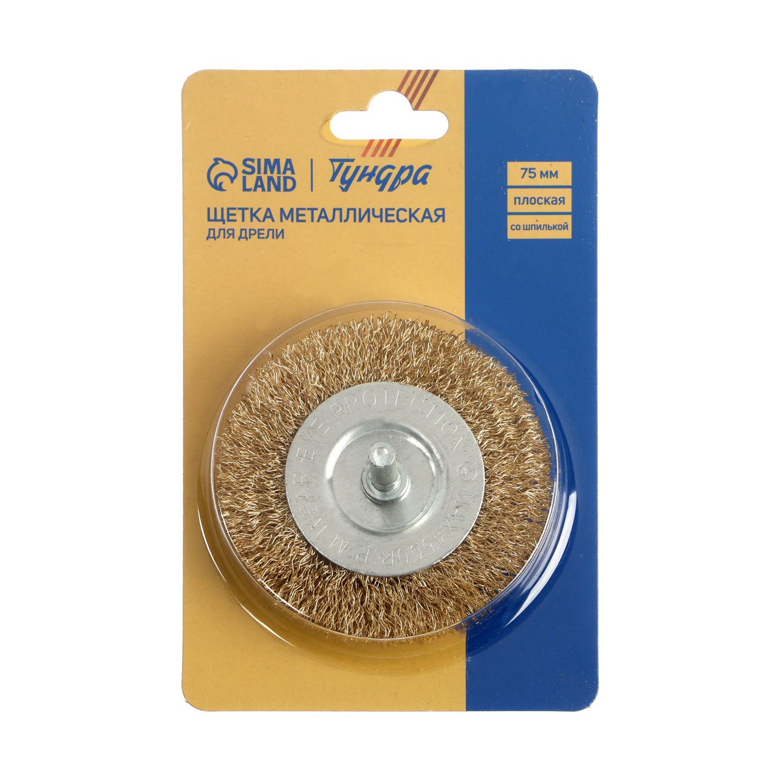 Щетка металлическая для дрели со шпилькой, плоская, 75 мм, 750 см., ТУНДРА, Китай