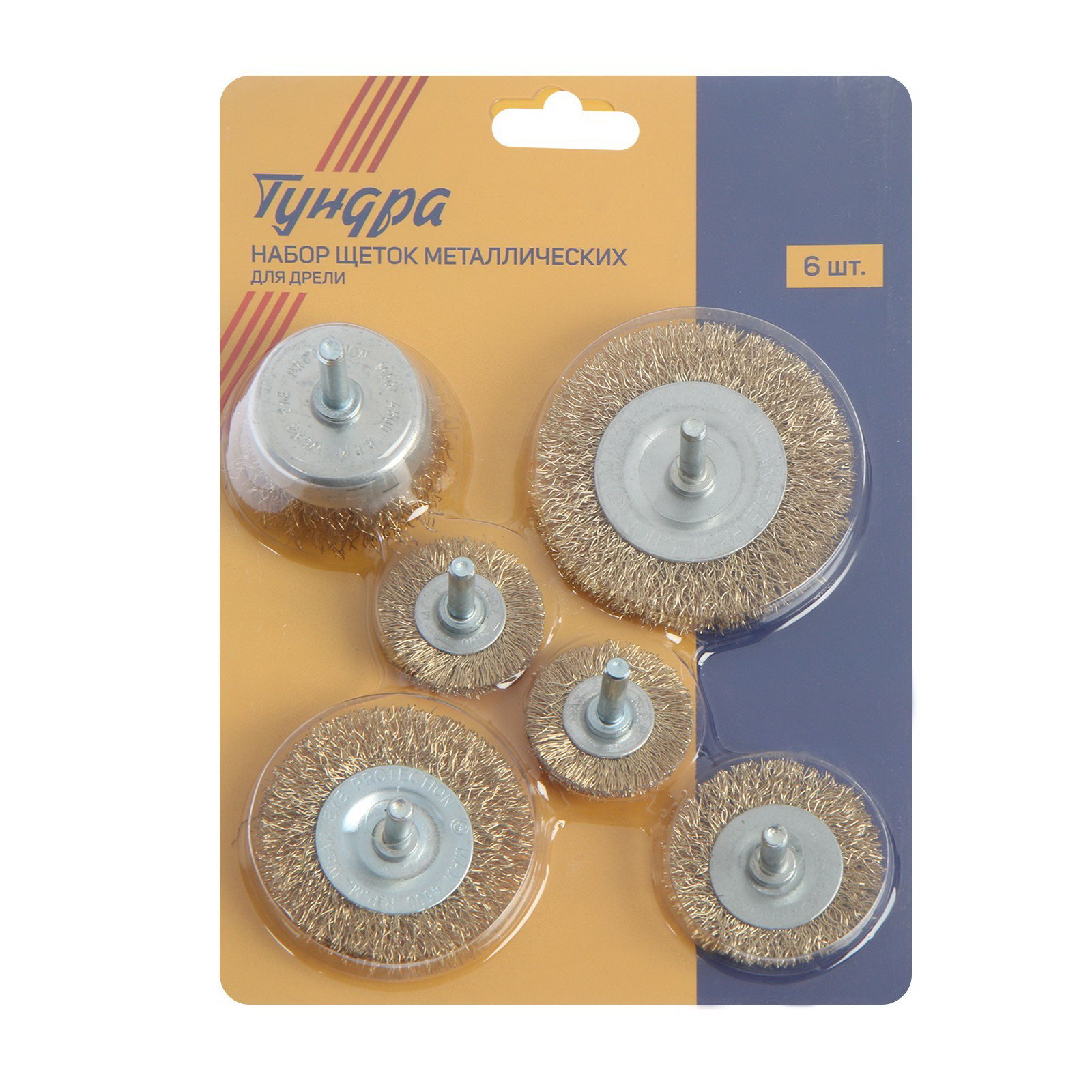 Набор щеток металлических для дрели плоские 40-50-65-75-100 мм, чашка 50 мм, 6 шт., ТУНДРА, Китай