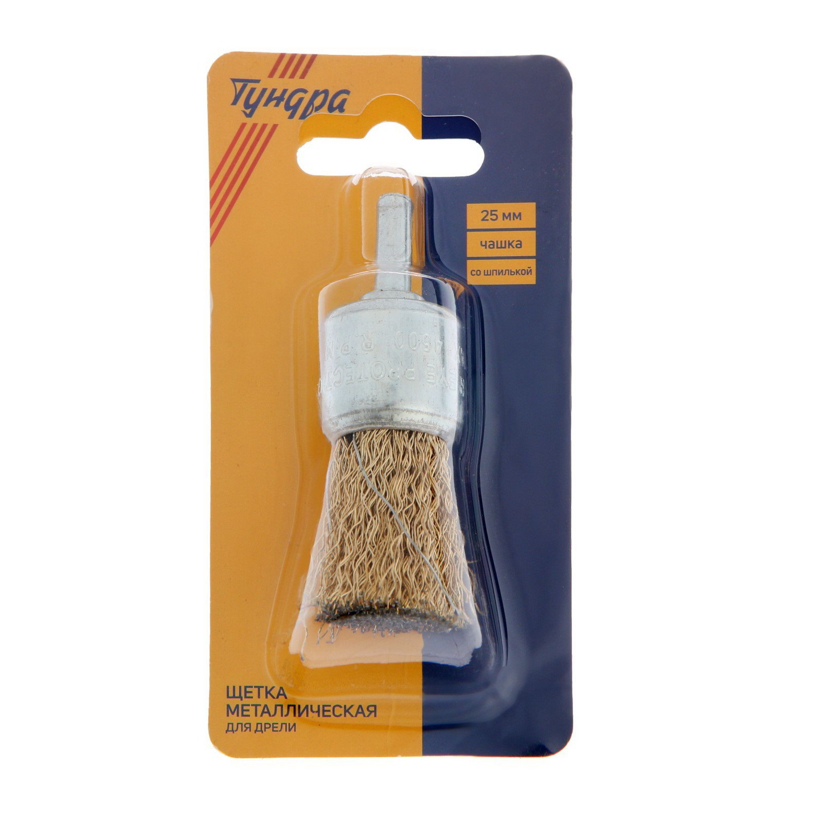 Щетка металлическая для дрели со шпилькой, "Чашка", 25 мм, 250 см., ТУНДРА, Китай