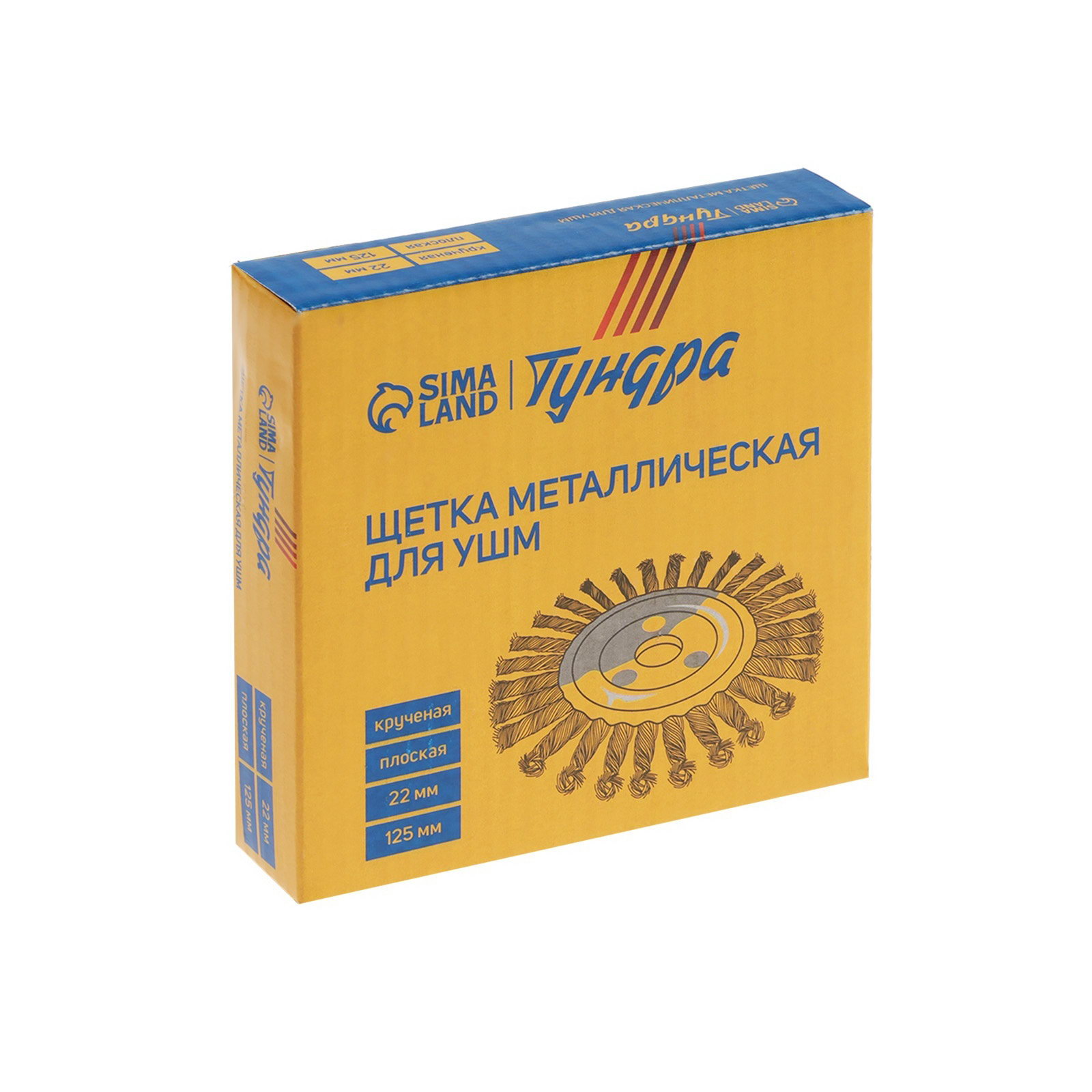 Щетка металлическая для УШМ крученая проволока, плоская, посадка 22 мм, 125 мм, 1250 см., ТУНДРА, Китай