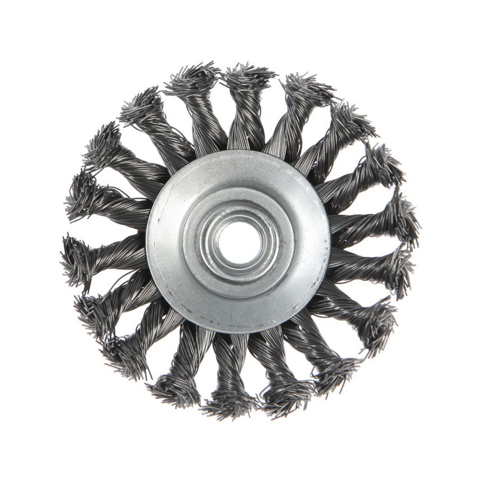 Щетка металлическая для УШМ крученая проволока, "Тарелка", М14, 100 мм, 1000 см., ЛОМ, Китай