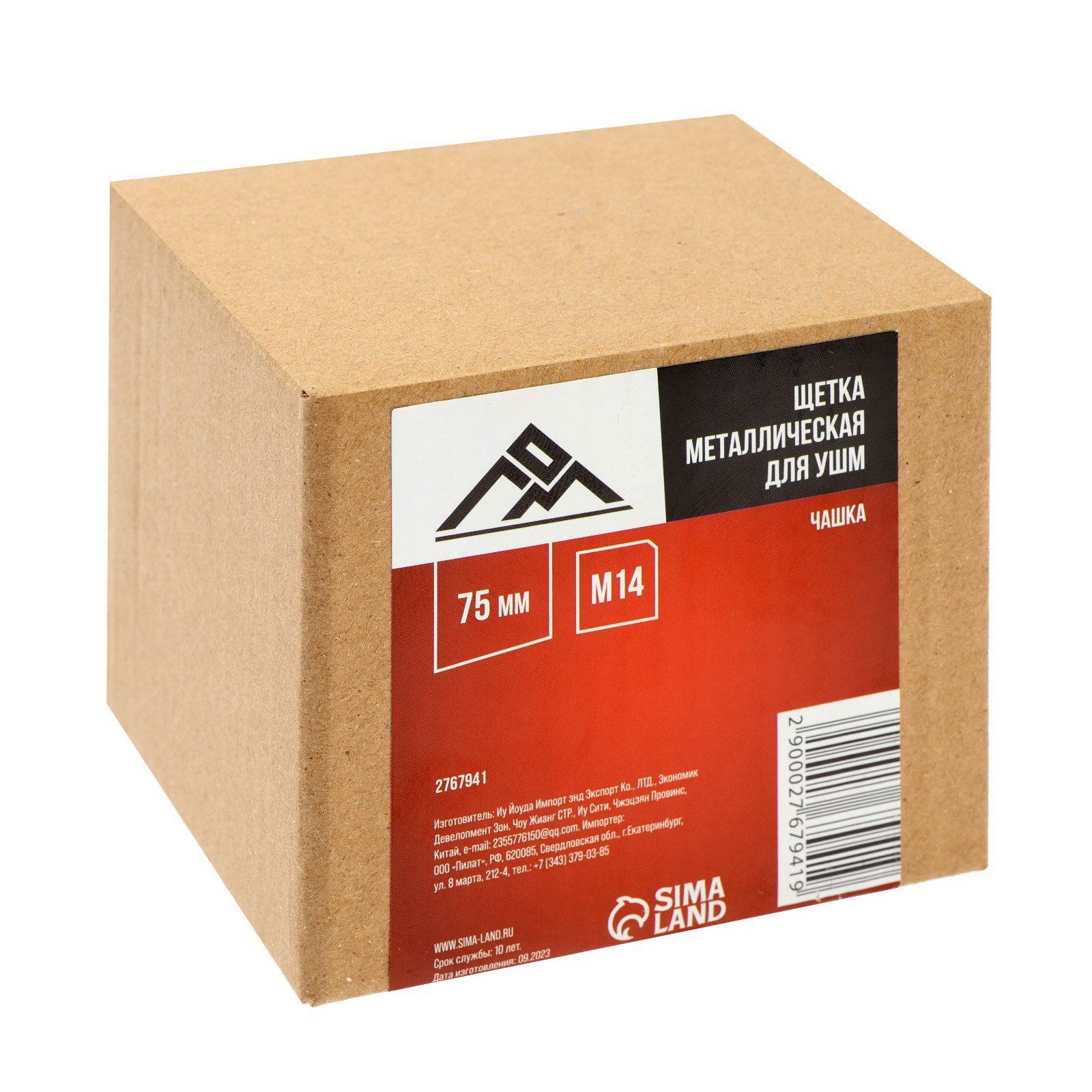 Щетка металлическая для УШМ "Чашка", М14, 75 мм, 750 см., ЛОМ, Китай