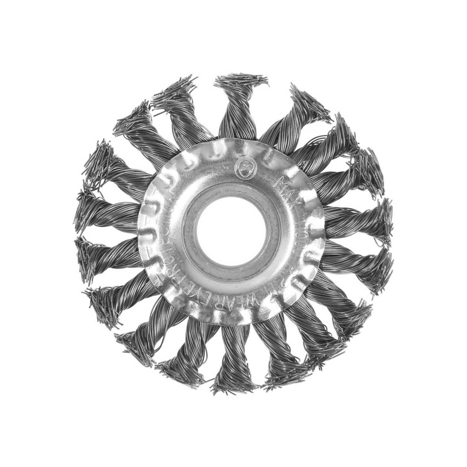 Щетка металлическая для УШМ крученая проволока, плоская, посадка 22 мм, 100 мм, 1000 см., ЛОМ, Китай