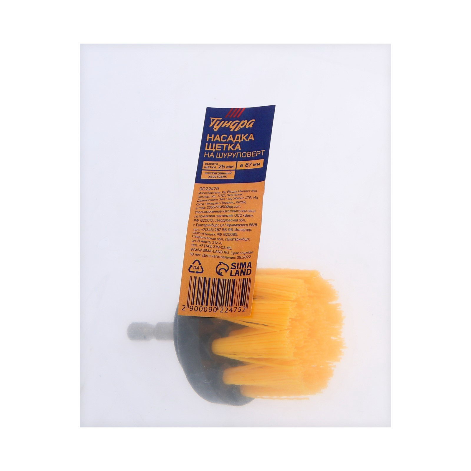 Насадка щетка на шуруповерт d=50 мм, высота 25 мм, шестигранный хвостовик, ТУНДРА, Китай