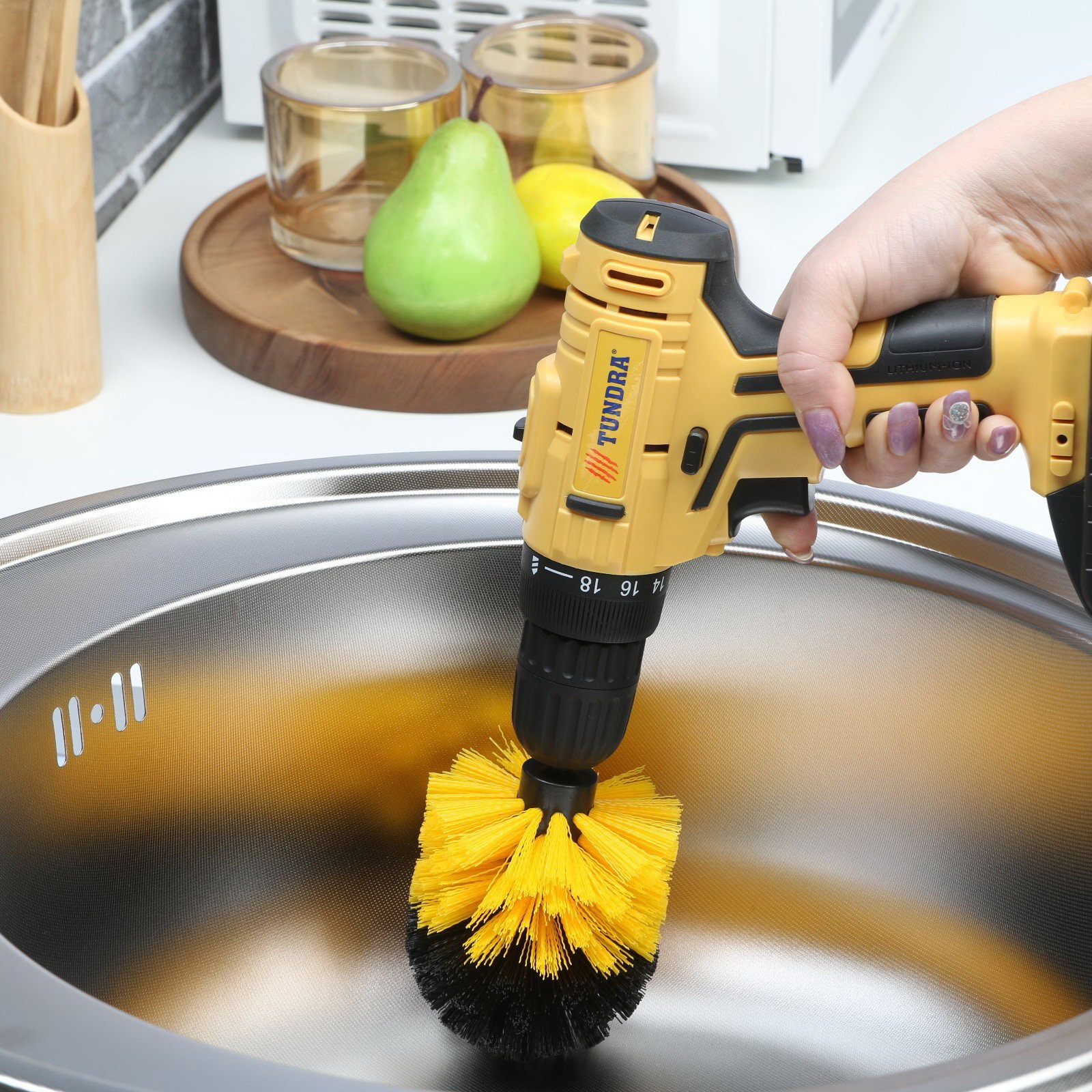 Размер упаковки: 9 x 8 x 17 см. Вид: Щетка Вид: Щетка tnved: 9603500000 Насадка щётка ТУНДРА предназначена для совместного использования с шуруповёртом для отчистки поверхности от загрязнений. Щётка подходит для отчистки кафельной плитки, половых покрытий, душевой кабины, ванной, ковров, автомобильных дисков и т.д. Корпус щётки выполнен из прочного пластика. Щетина выполнена из нейлона средней жёсткости. Диаметр щётки составляет 87 мм, высота 125 мм Шестигранный хвостовик надёжно фиксируется в патроне инструмента. | ||