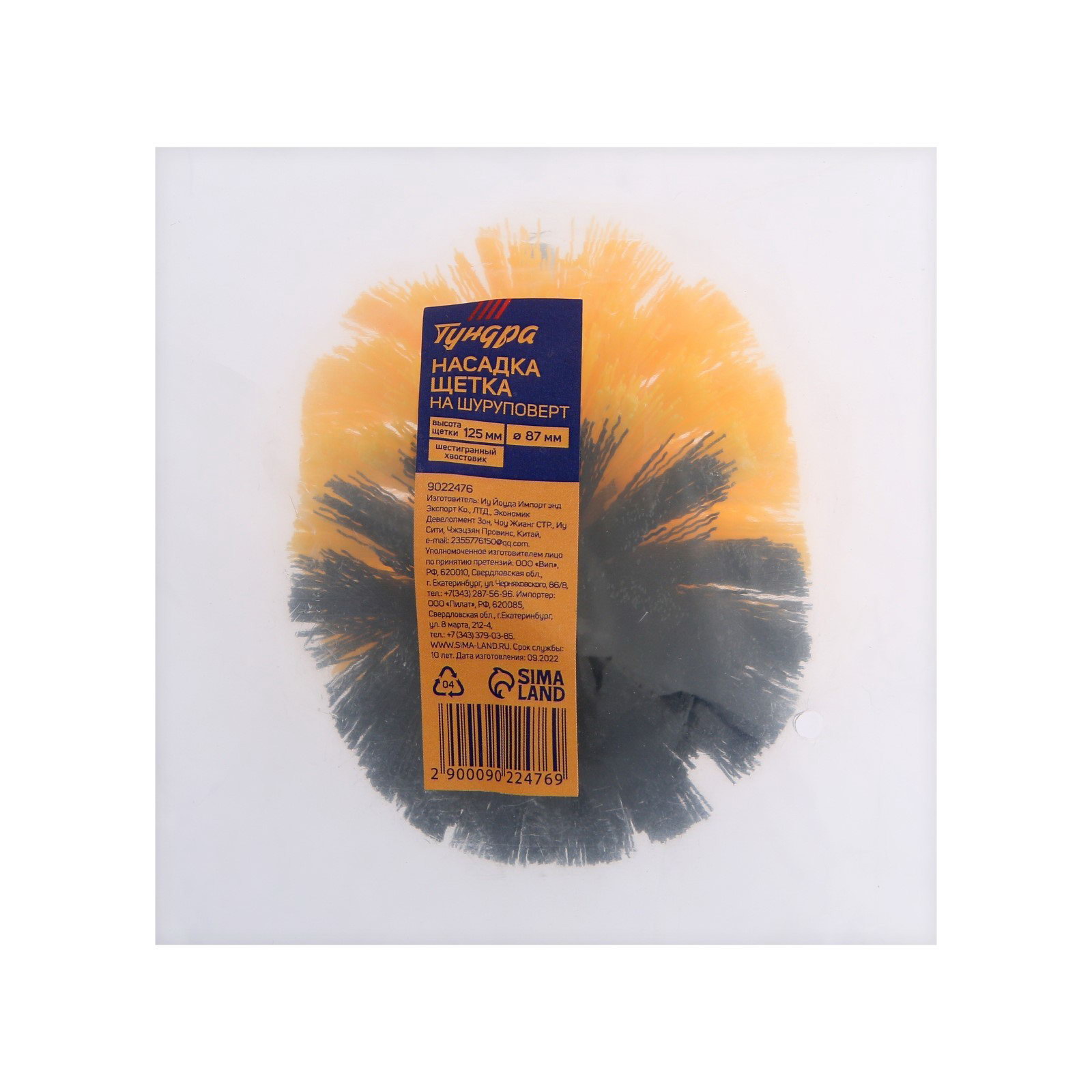 Насадка щетка на шуруповерт d=85 мм, высота 125 мм, шестигранный хвостовик, ТУНДРА, Китай