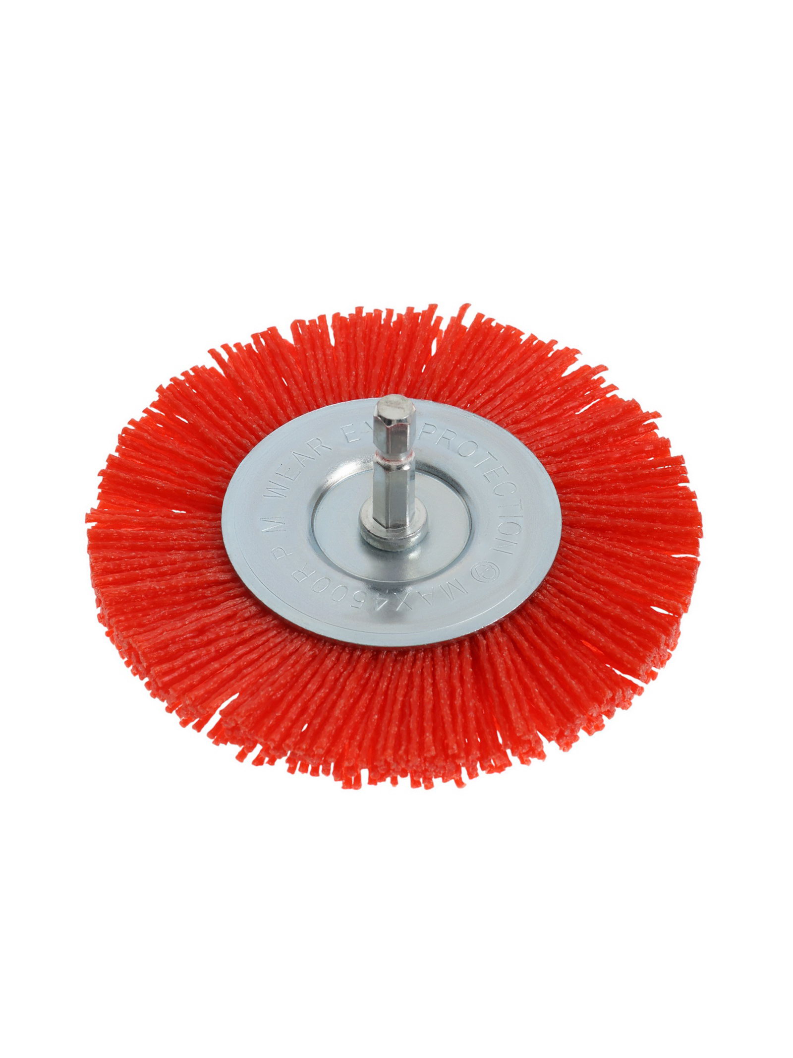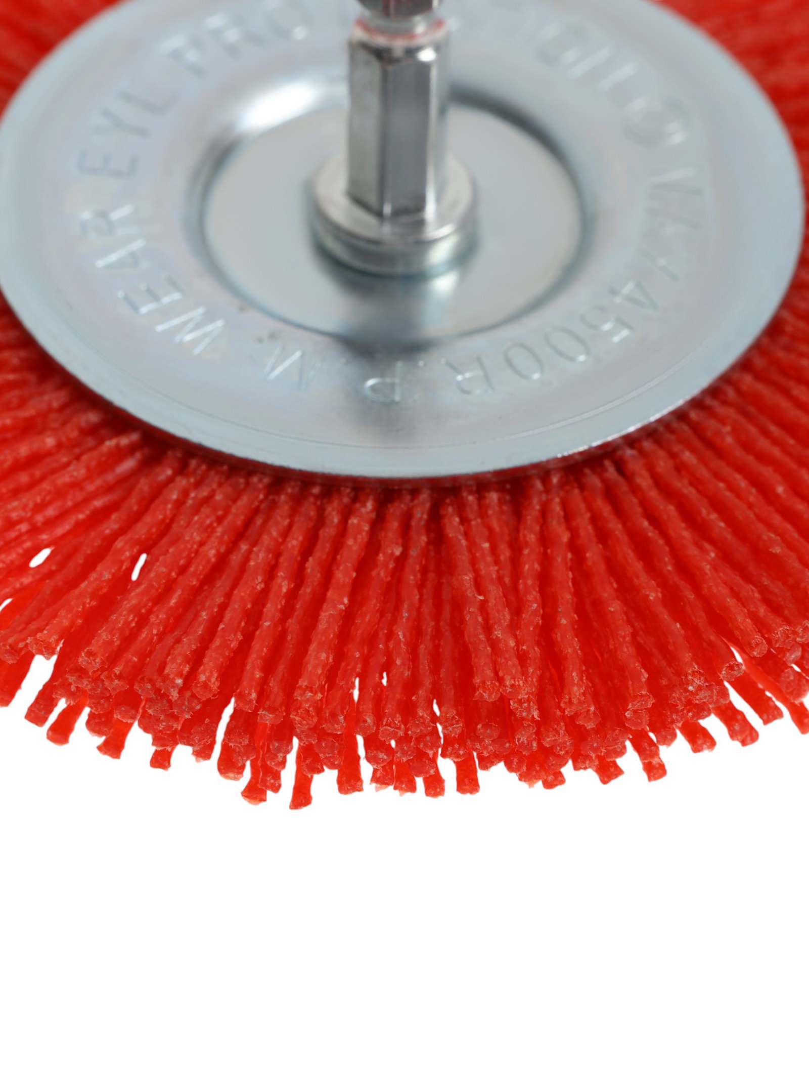 Щетка нейлоновая для дрели со шпилькой, плоская, 100 мм, 1000 см., ТУНДРА, Китай