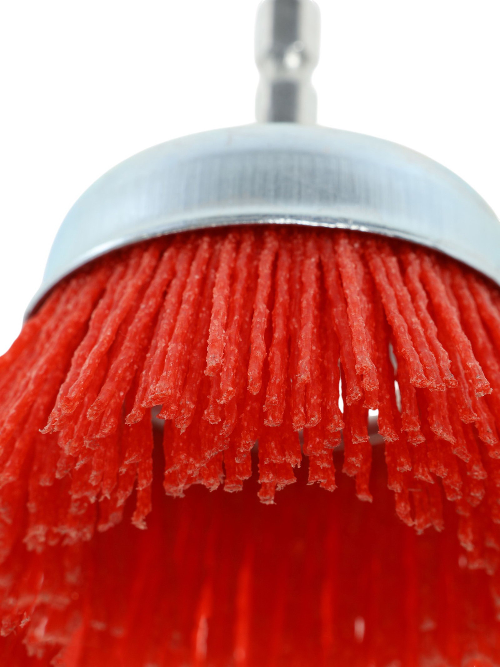 Щетка нейлоновая для дрели со шпилькой, "Чашка", 75 мм, 750 см., ТУНДРА, Китай