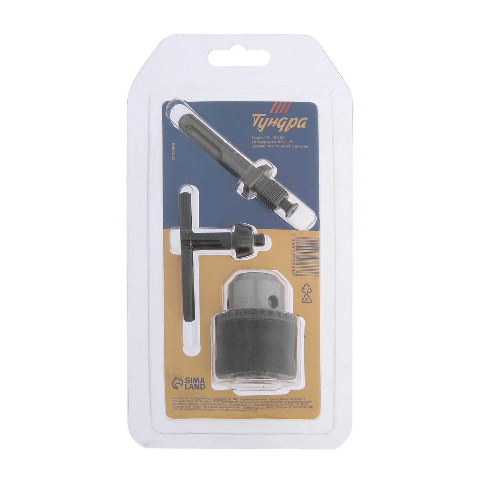 Набор для дрели переходник SDS-plus, патрон 1/2"- 20 UNF 1.5 - 13 мм, ТУНДРА, Китай