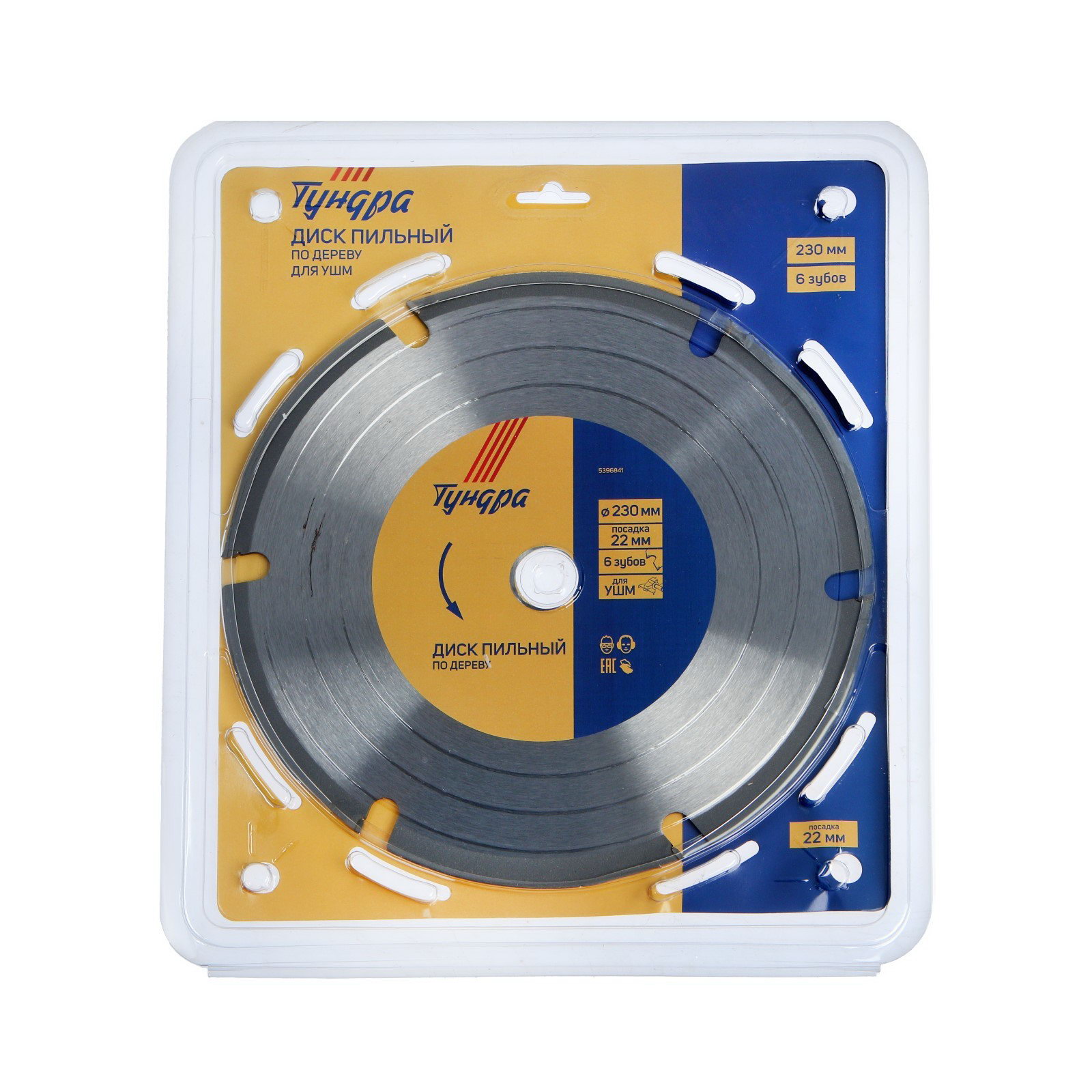 Диск пильный для УШМ для быстрой и плавной обработки дерева, 230x22 мм, 6 зубов, 2300 см., ТУНДРА, Китай