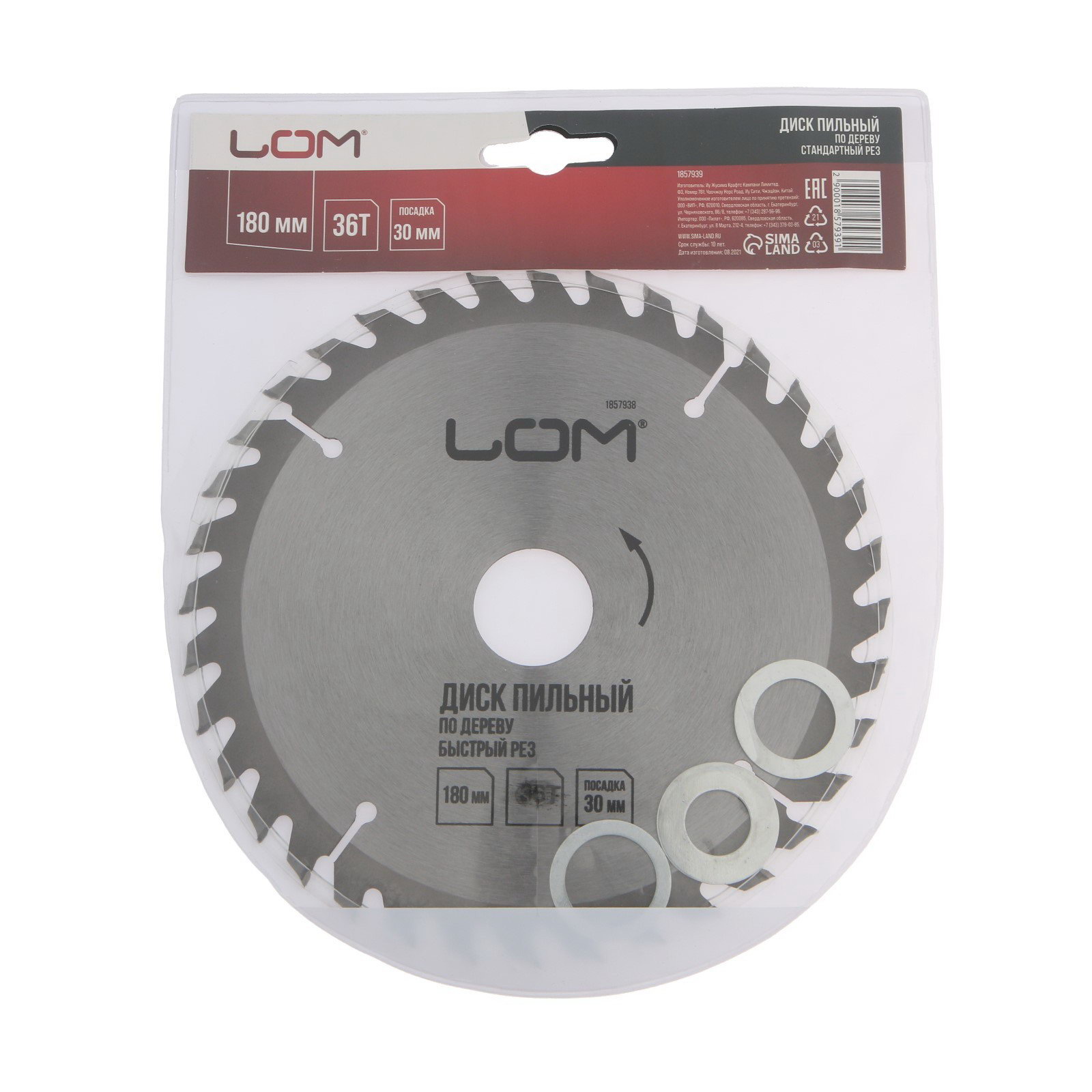 Диск пильный по дереву стандартный рез, 180x30 мм, 1800 см., ЛОМ, Китай