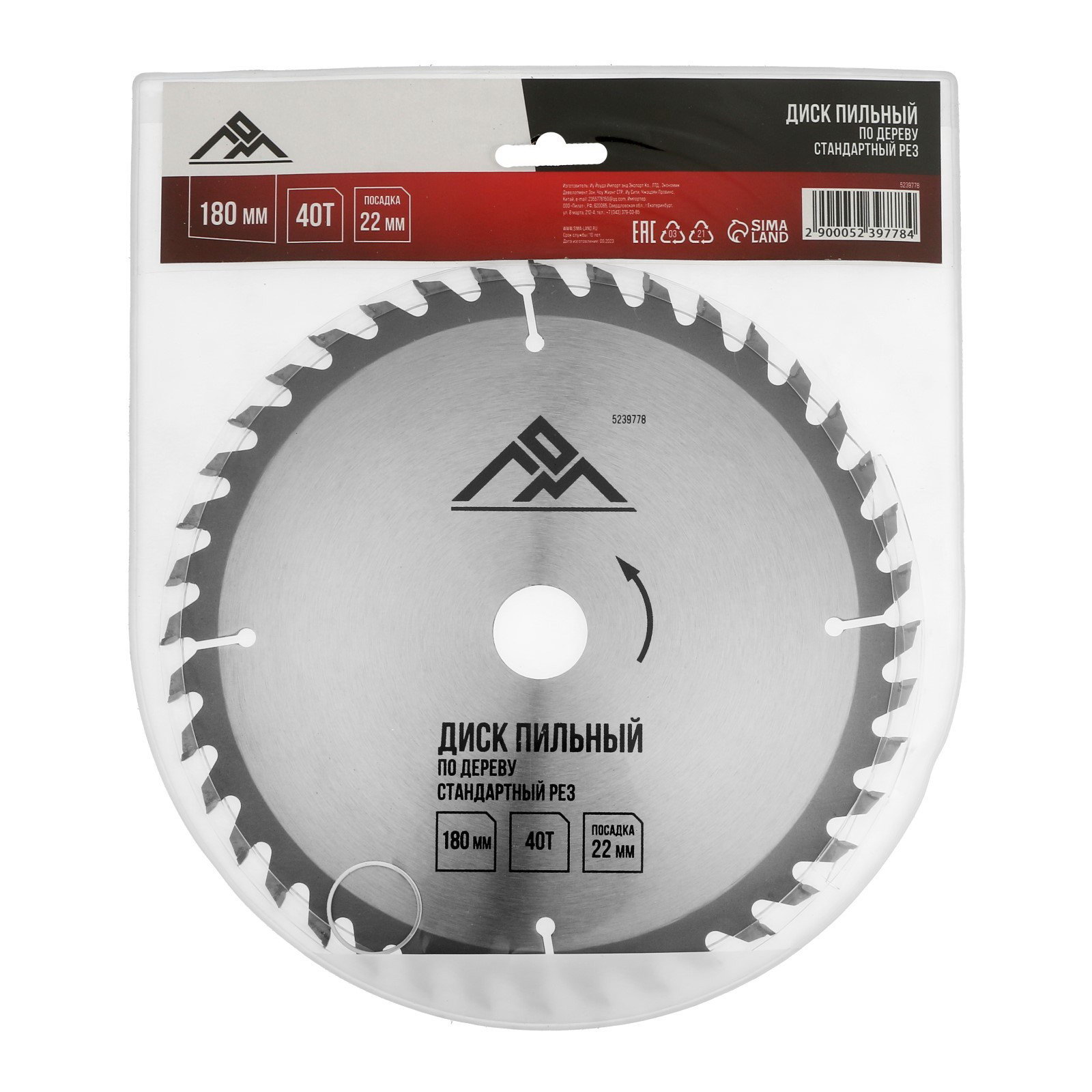 Диск пильный по дереву стандартный рез, 180x22 мм, 40 зубьев, 1800 см., ЛОМ, Китай
