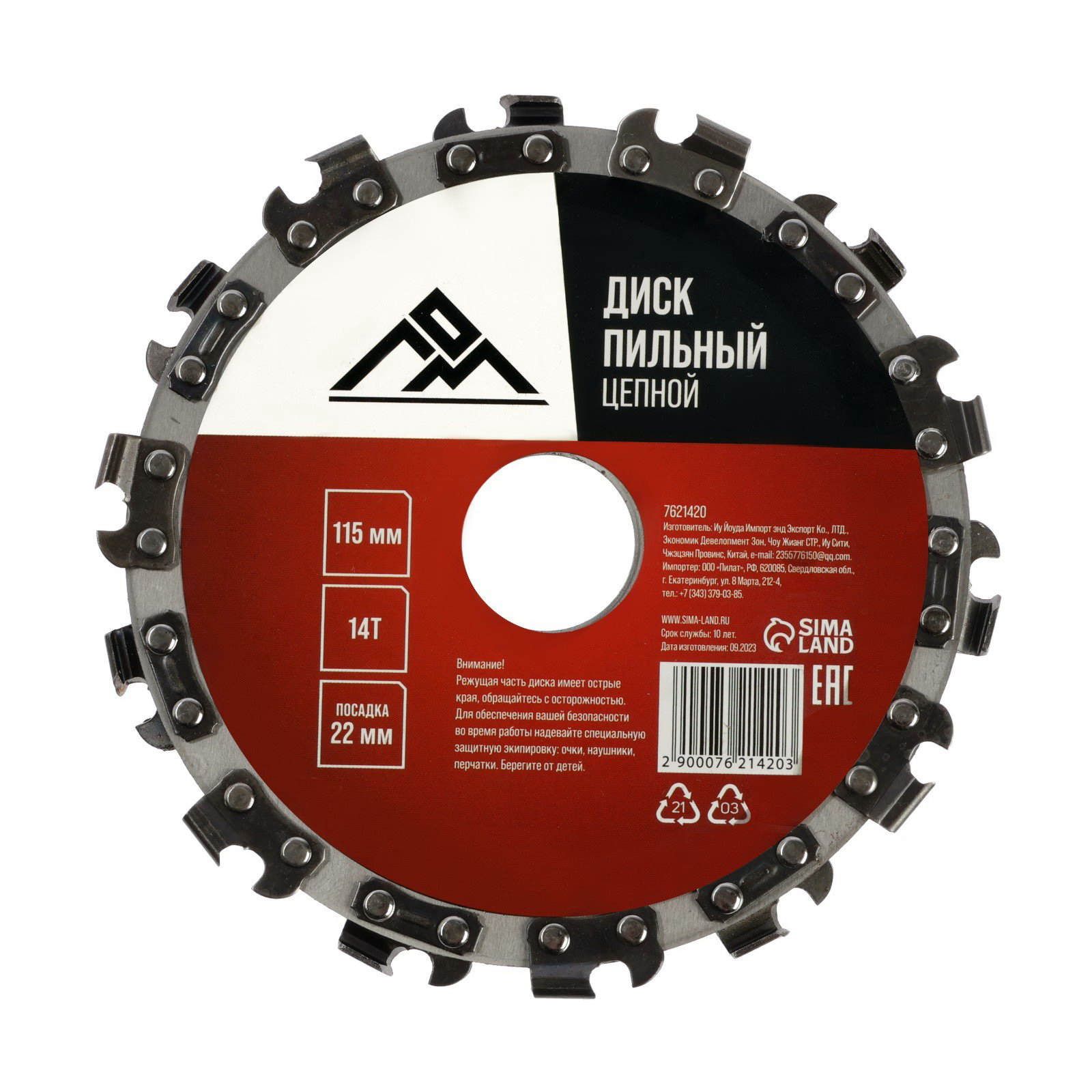 Диск пильный цепной для УШМ 14Т, 115x22 мм, 1150 см., ЛОМ, Китай