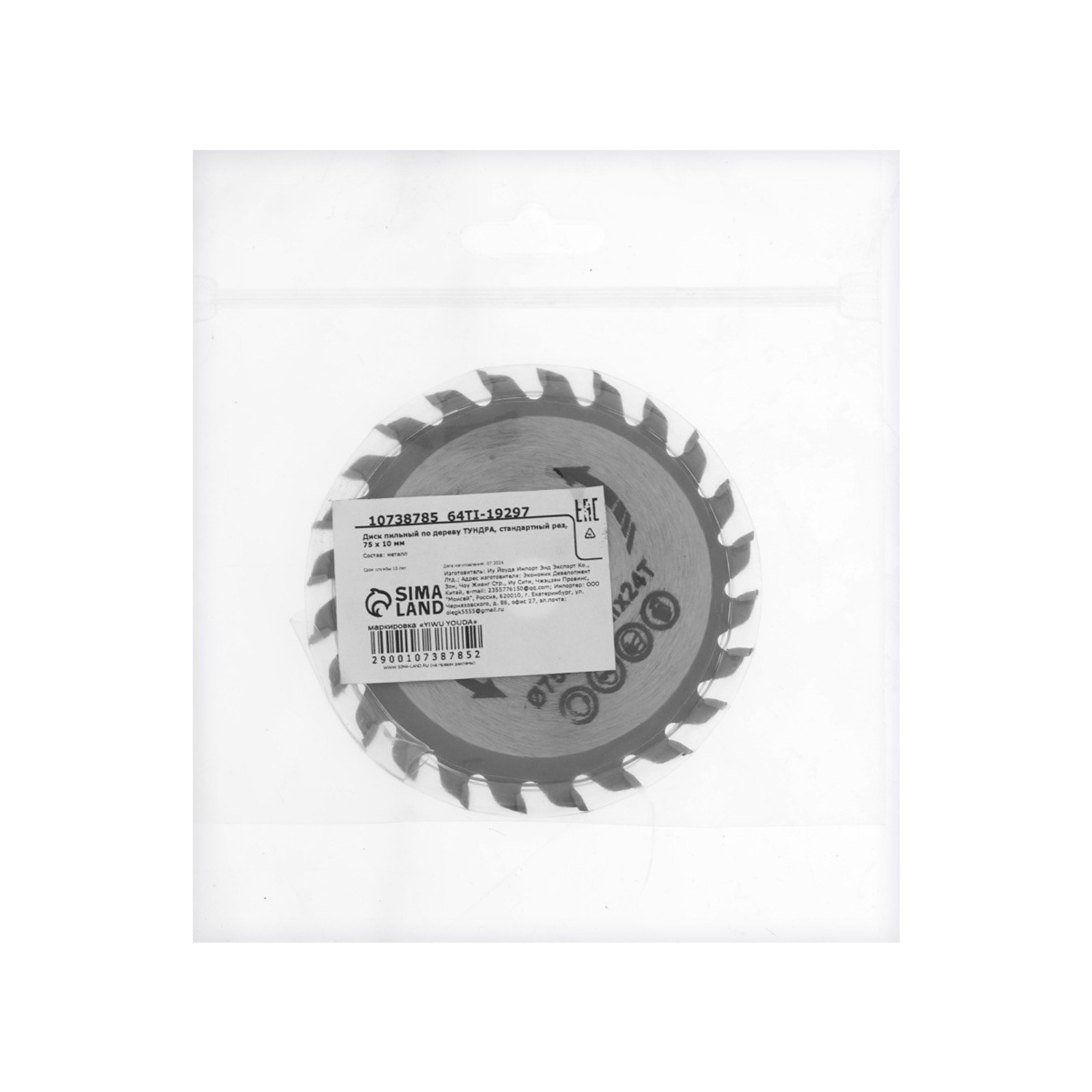 Диск пильный по дереву стандартный рез, 75x10 мм, 24 зуба, 750 см., ТУНДРА, Китай