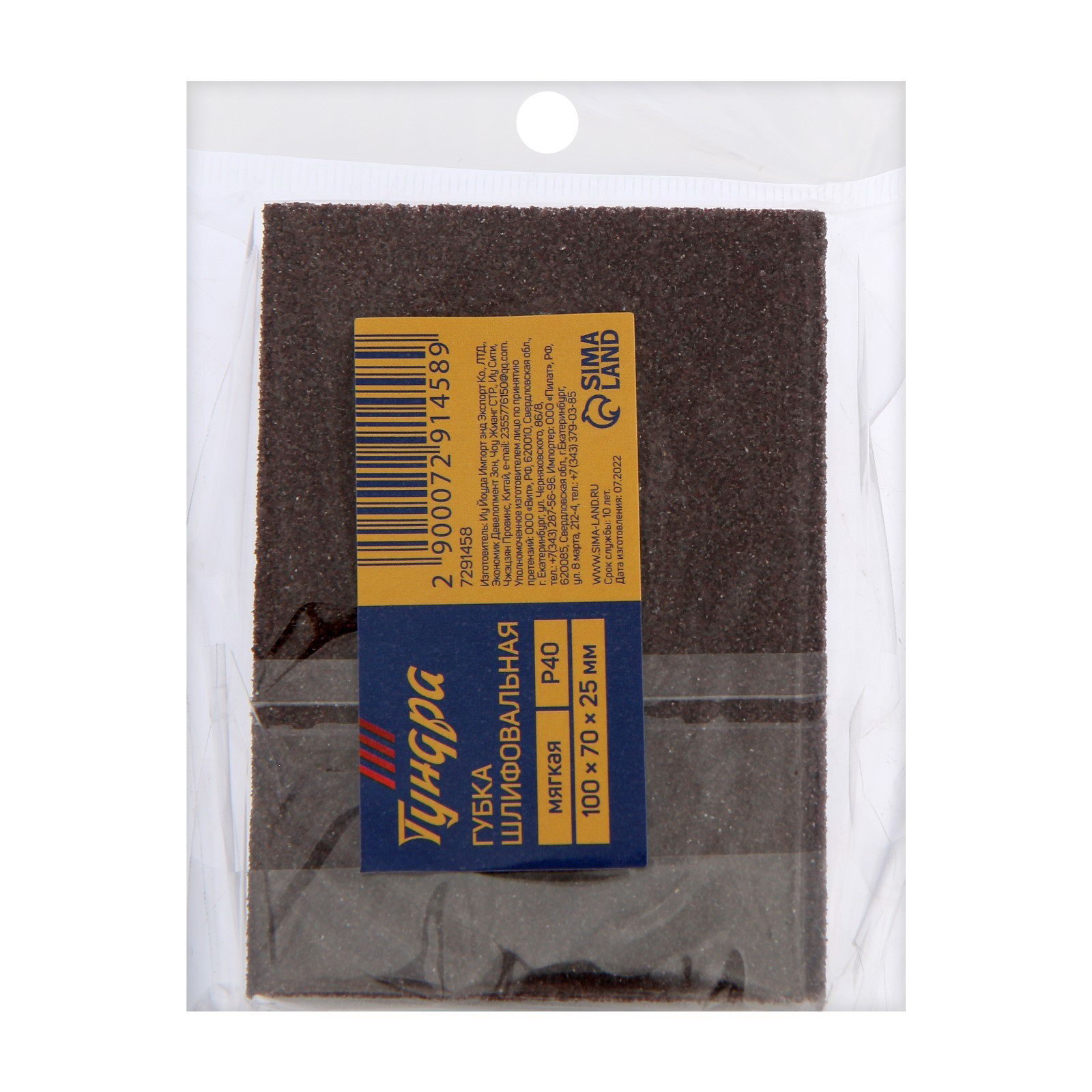 Губка абразивная шлифовальная мягкая, 100x70x25 мм, P40, ТУНДРА, Китай