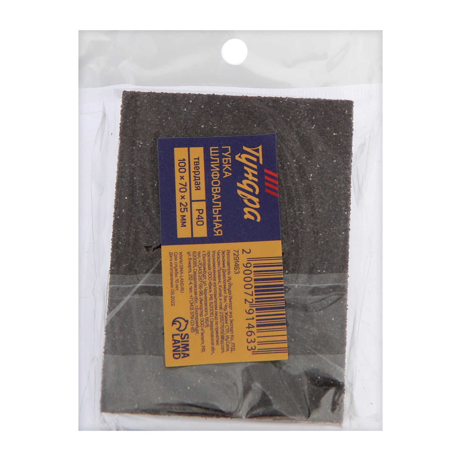 Губка абразивная шлифовальная твердая, 100x70x25 мм, P40, ТУНДРА, Китай
