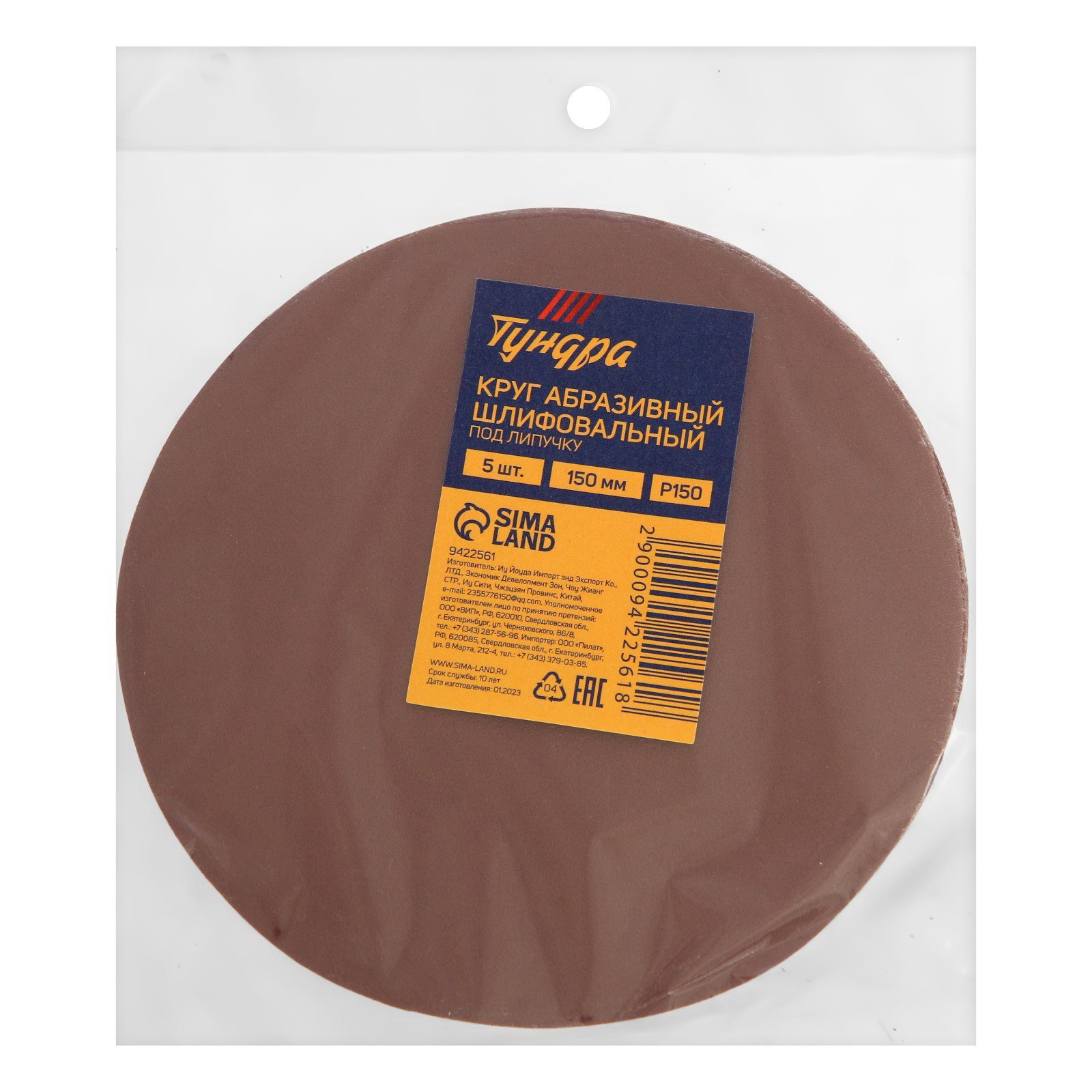 Круг абразивный шлифовальный под "Липучку" 150 мм, Р150, 5 шт., 1500 см., ТУНДРА, Китай