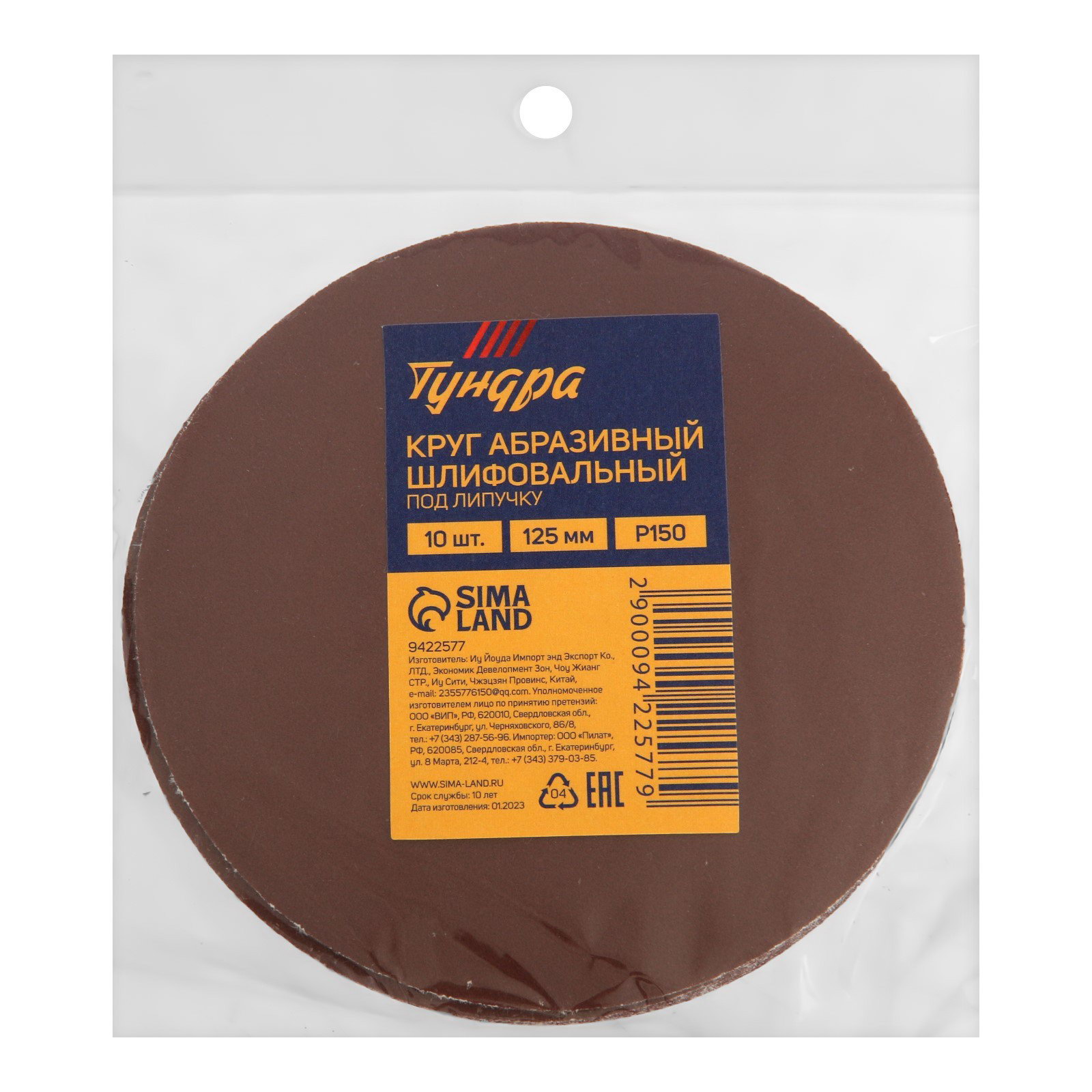 Круг абразивный шлифовальный под "Липучку" 125 мм, Р150, 10 шт., 1250 см., ТУНДРА, Китай