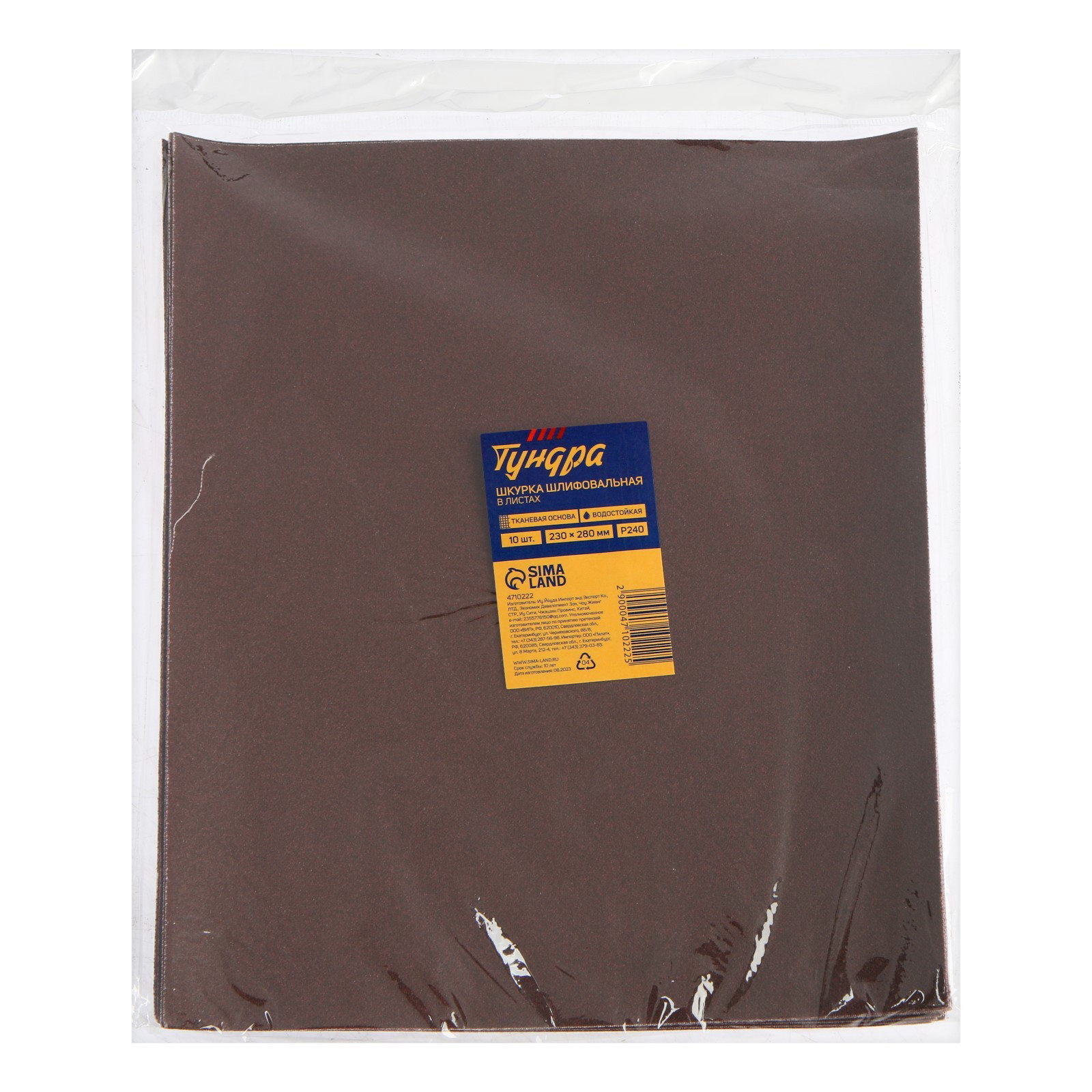 Шкурка шлифовальная в листах на тканевой основе водостойкая, 230x280, Р240, 10 шт., ТУНДРА, Китай