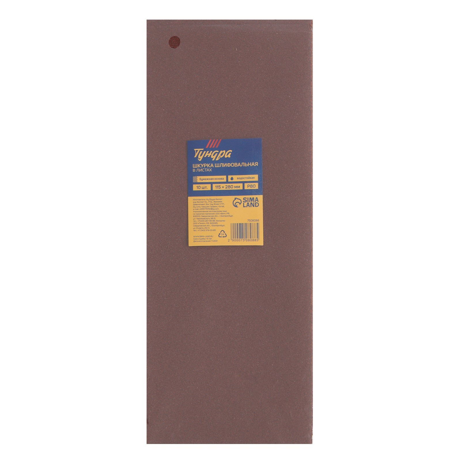 Шкурка шлифовальная в листах на бумажной основе водост., 115x280, Р80, 10 шт., ТУНДРА, Китай