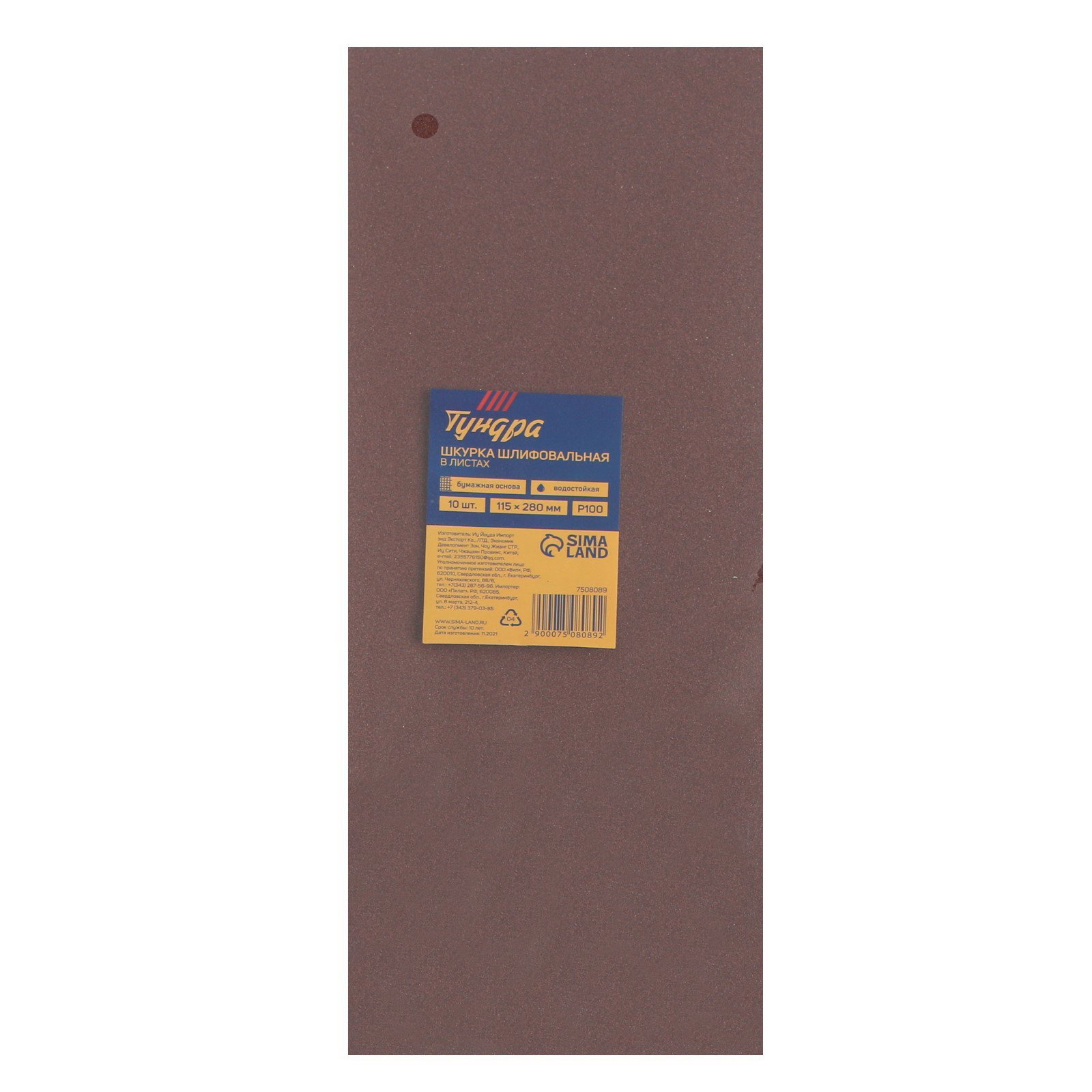 Шкурка шлифовальная в листах на бумажной основе водост., 115x280, Р100, 10 шт., ТУНДРА, Китай