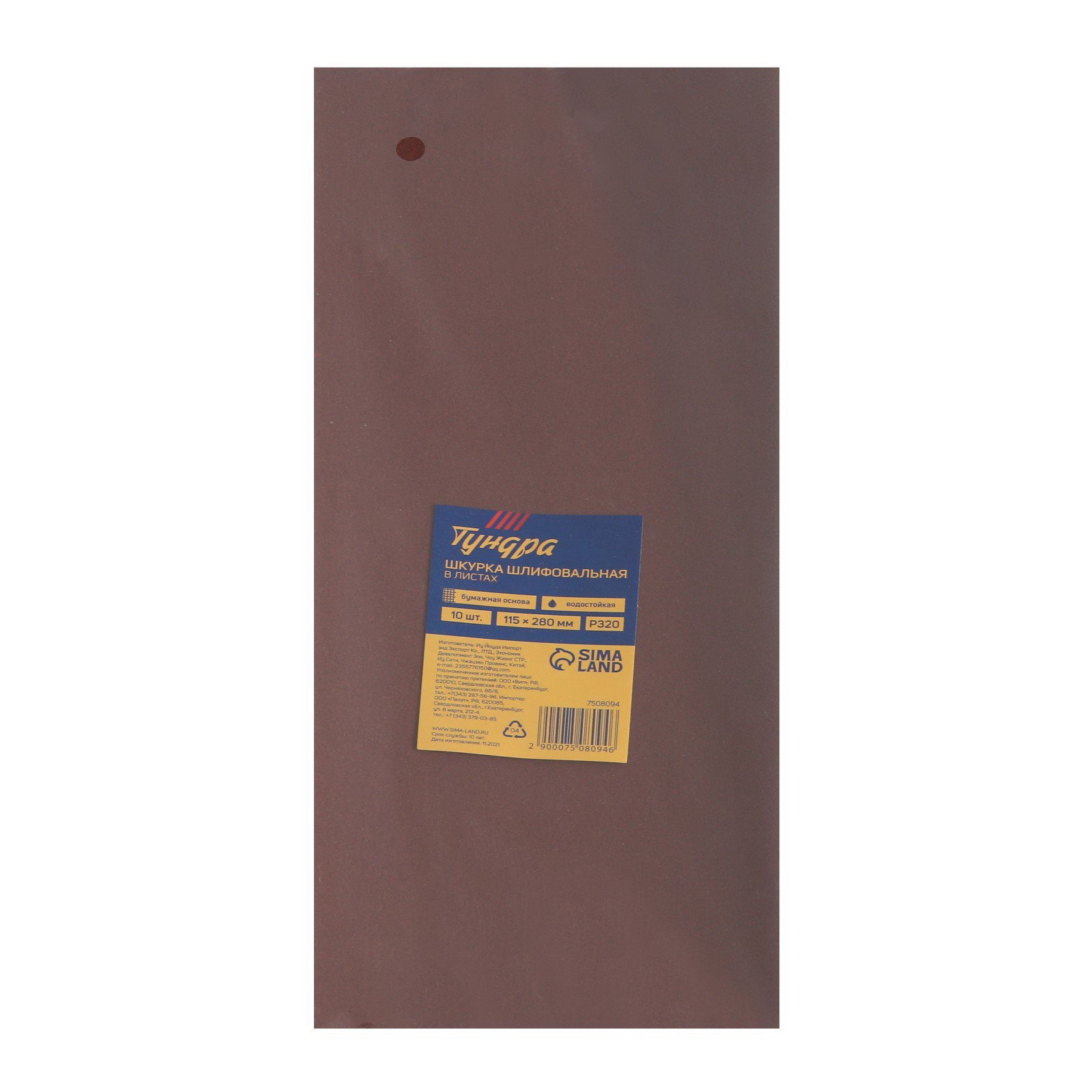 Шкурка шлифовальная в листах на бумажной основе водост., 115x280, Р320, 10 шт., ТУНДРА, Китай