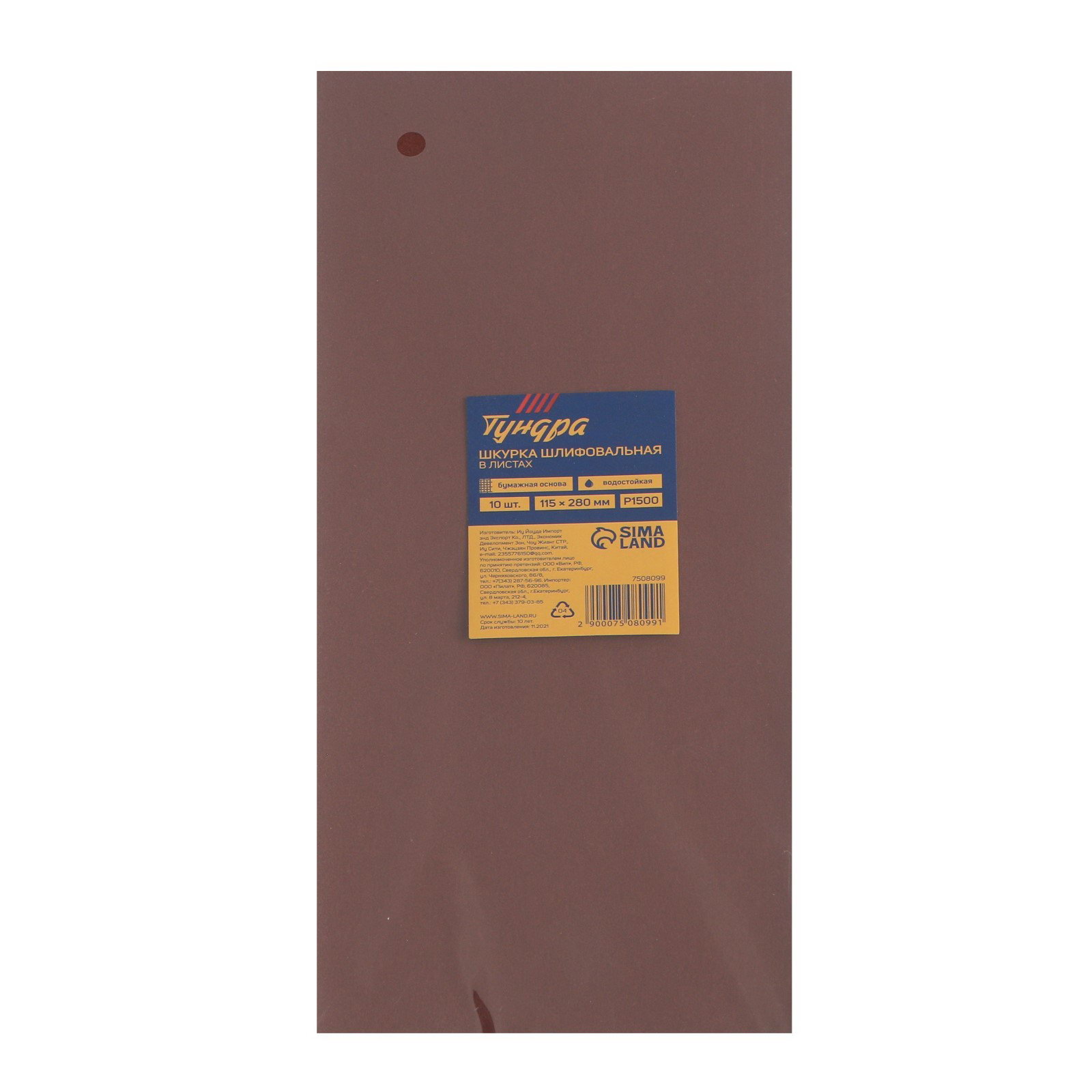 Шкурка шлифовальная в листах на бумажной основе водост., 115x280, Р1500, 10 шт., ТУНДРА, Китай
