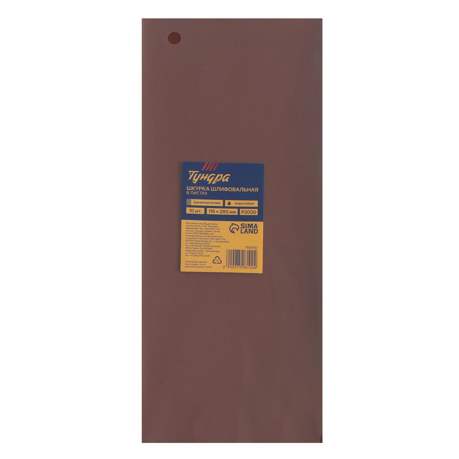 Шкурка шлифовальная в листах на бумажной основе водост., 115x280, Р2000, 10 шт., ТУНДРА, Китай