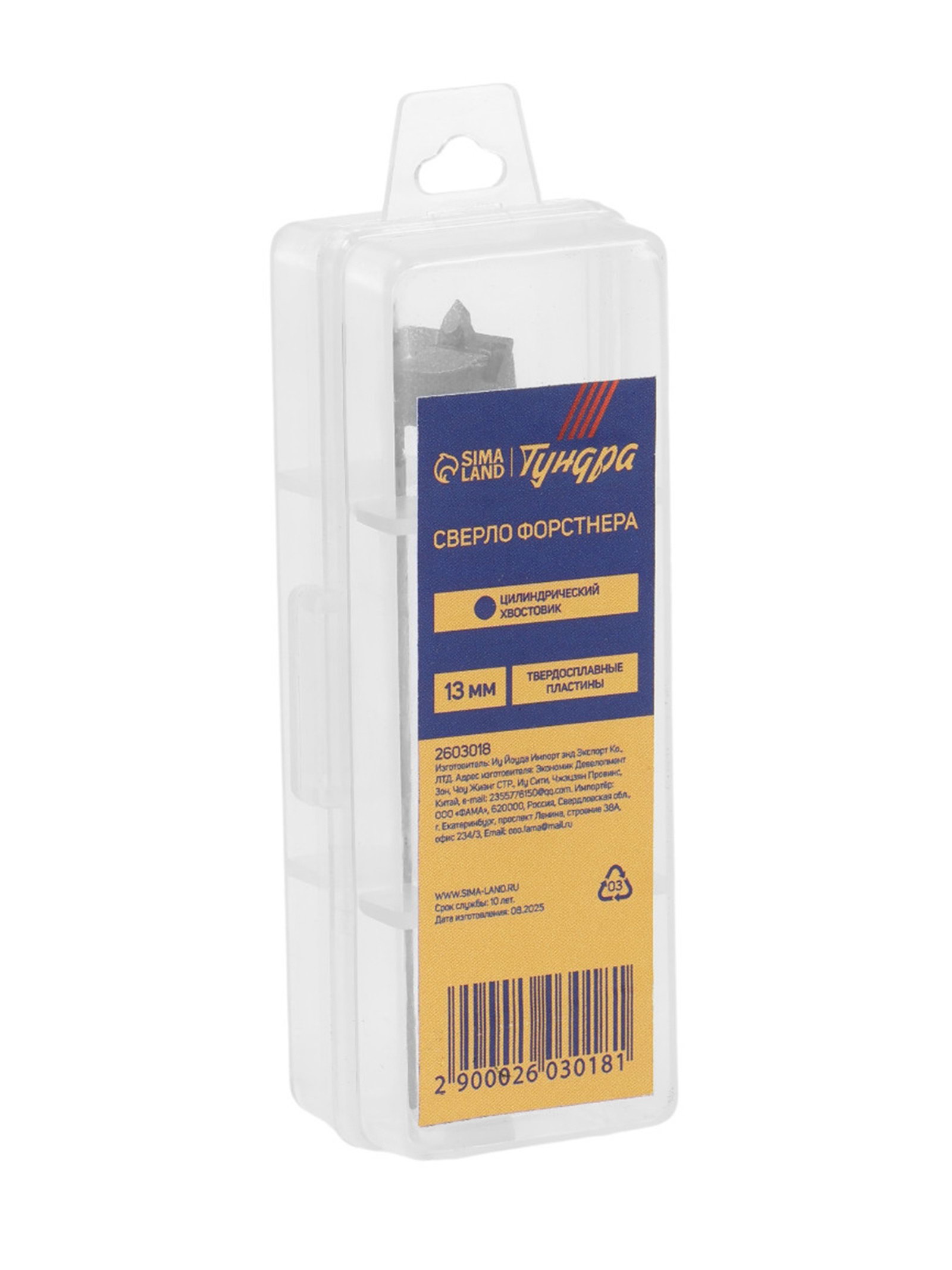 Сверло Форстнера твердосплавные пластины, цилиндрический хвостовик, 13 мм, 130 см., ТУНДРА, Китай