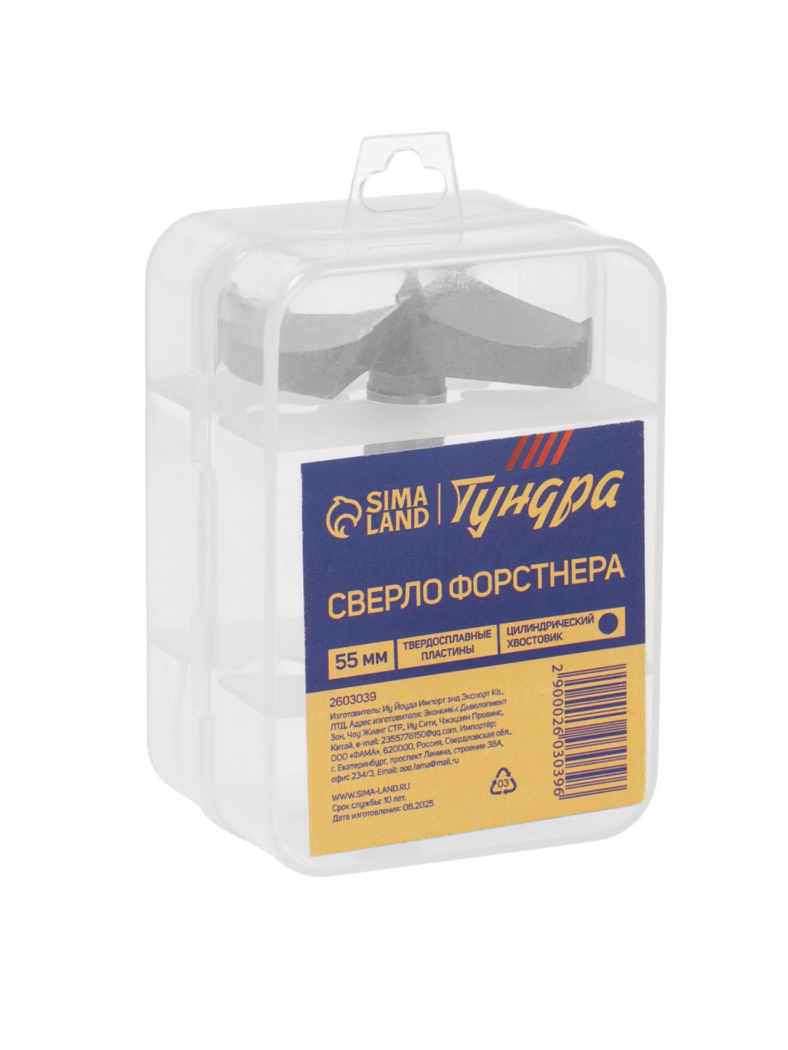 Сверло Форстнера твердосплавные пластины, цилиндрический хвостовик, 55 мм, 550 см., ТУНДРА, Китай