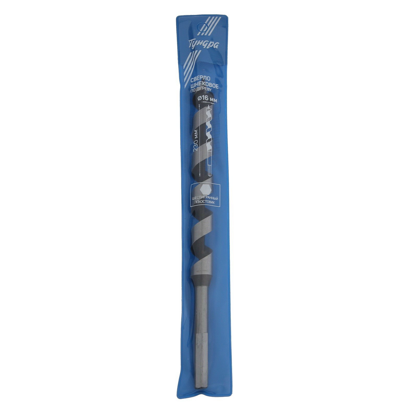 Сверло по дереву шнековое шестигранный хвостовик, 16x230 мм, 160 см., ТУНДРА, Китай