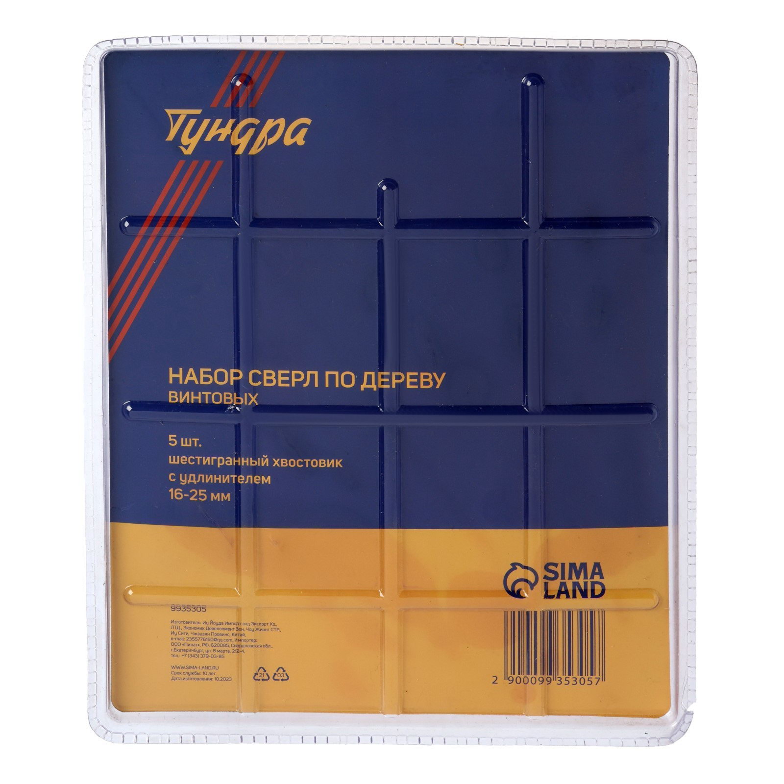 Набор сверл по дереву винтовых шестигранный хвост., с удлинителем, 16-25 мм, 5 шт., 250 см., ТУНДРА, Китай