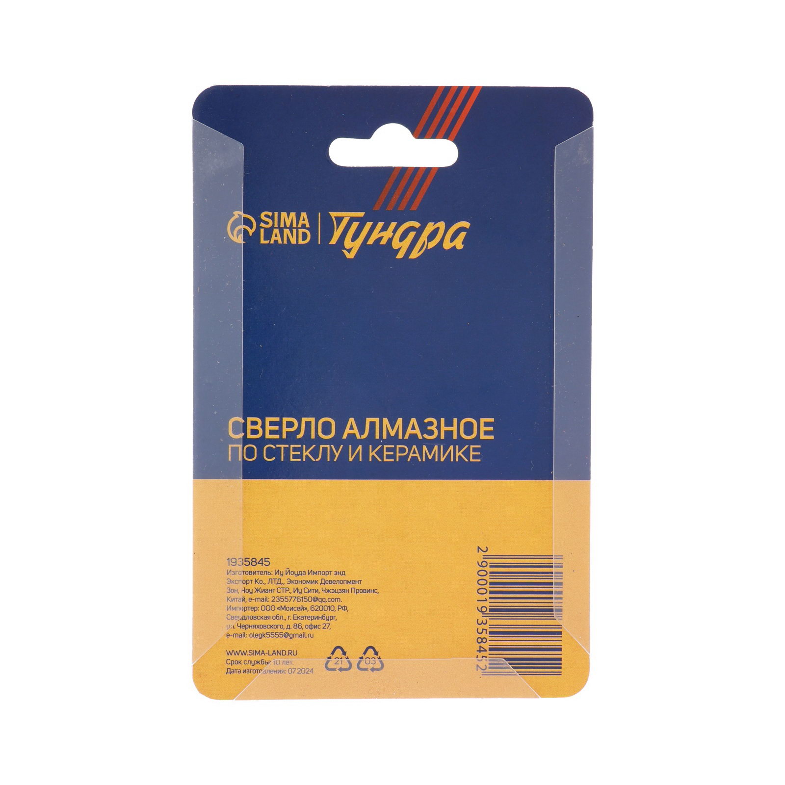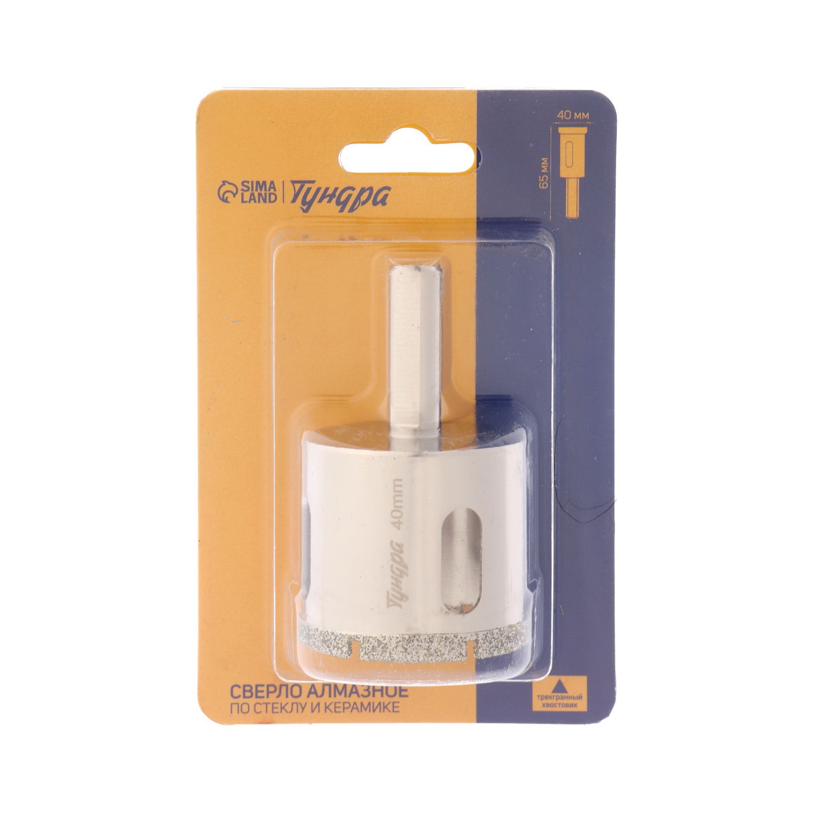 Сверло алмазное по стеклу и керамике трехгранный хвостовик, 40x65 мм, 400 см., ТУНДРА, Китай