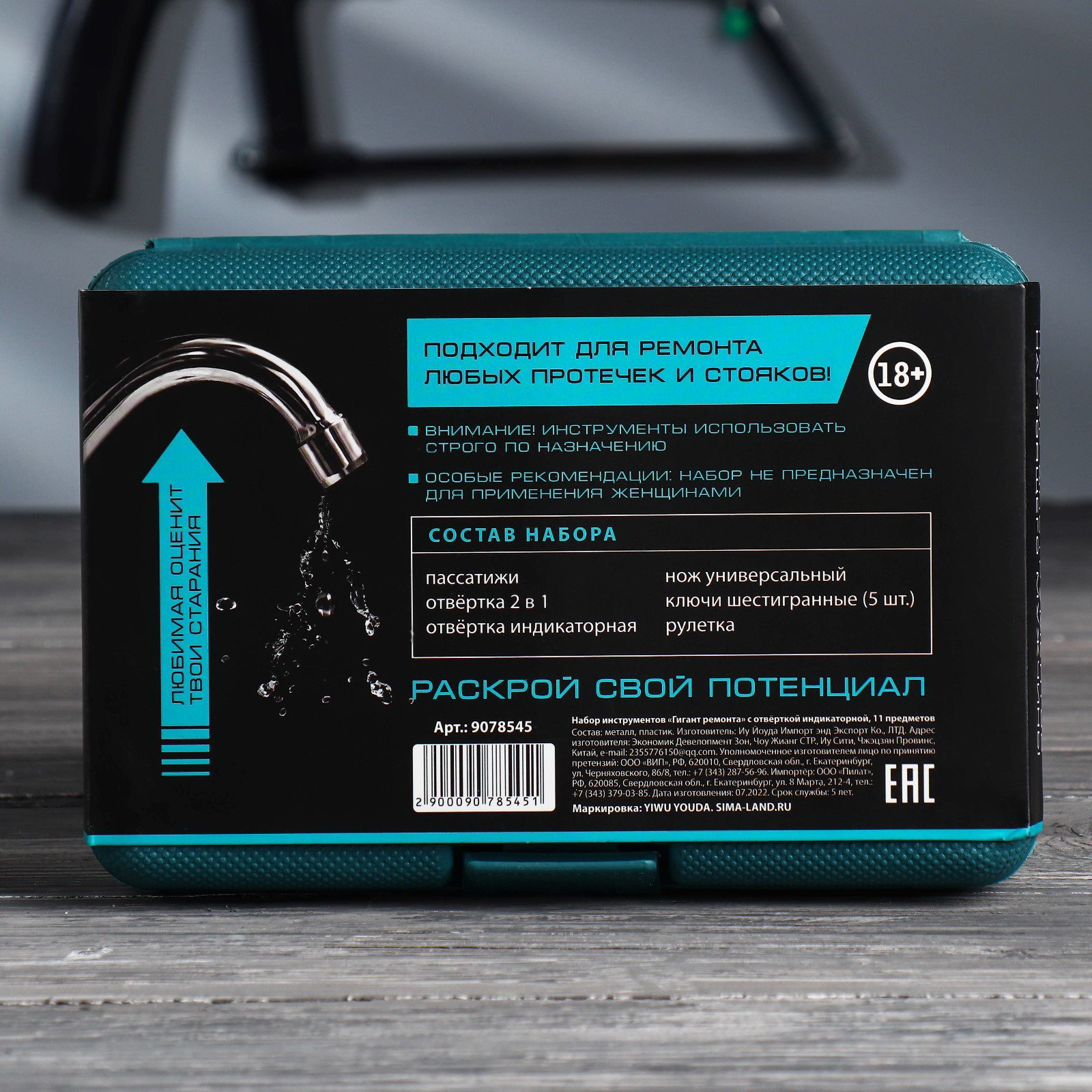 Набор инструментов "Гигант ремонта" с отверткой индикаторной, 11 предметов, 13.5x19.5x4 см., Китай