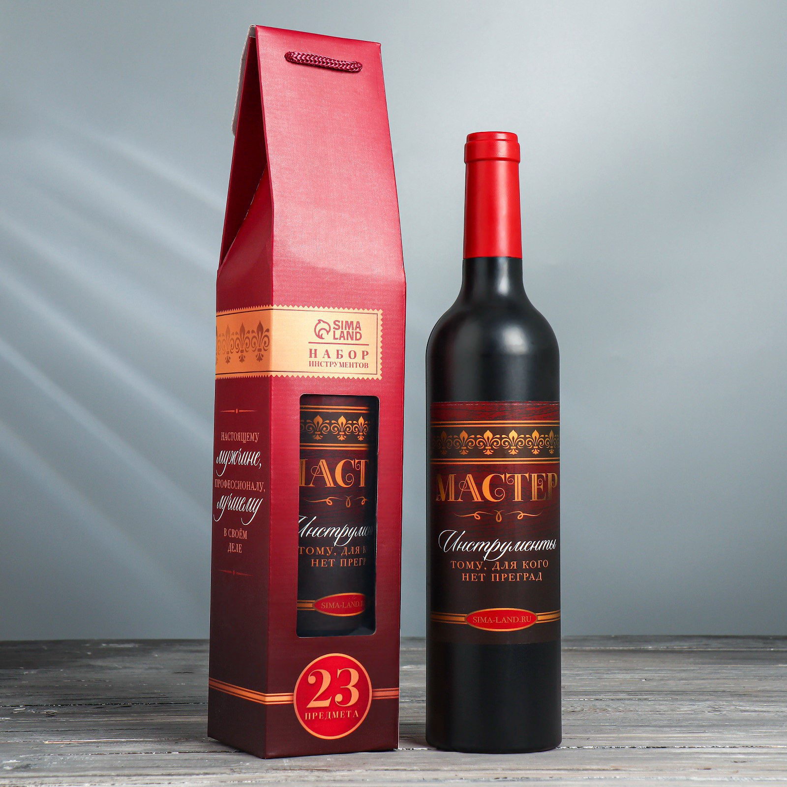 Подарочный набор инструментов в бутылке "Мастер", 23 предмета, 7x33x7 см., Сима-ленд, Китай