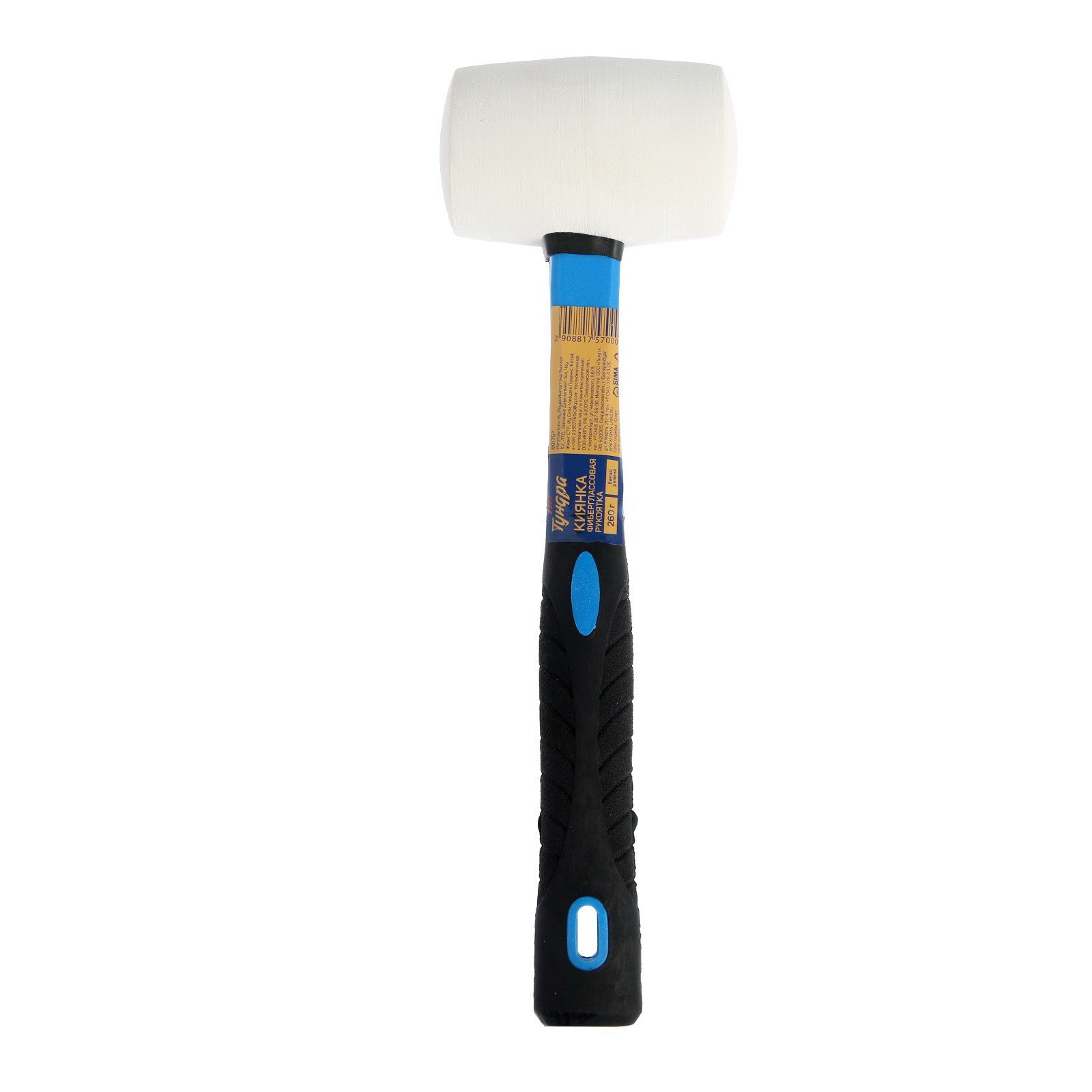 Киянка фиберглассовая рукоятка, белая резина, 260 г, 8x28x5.5 см., ТУНДРА, Китай