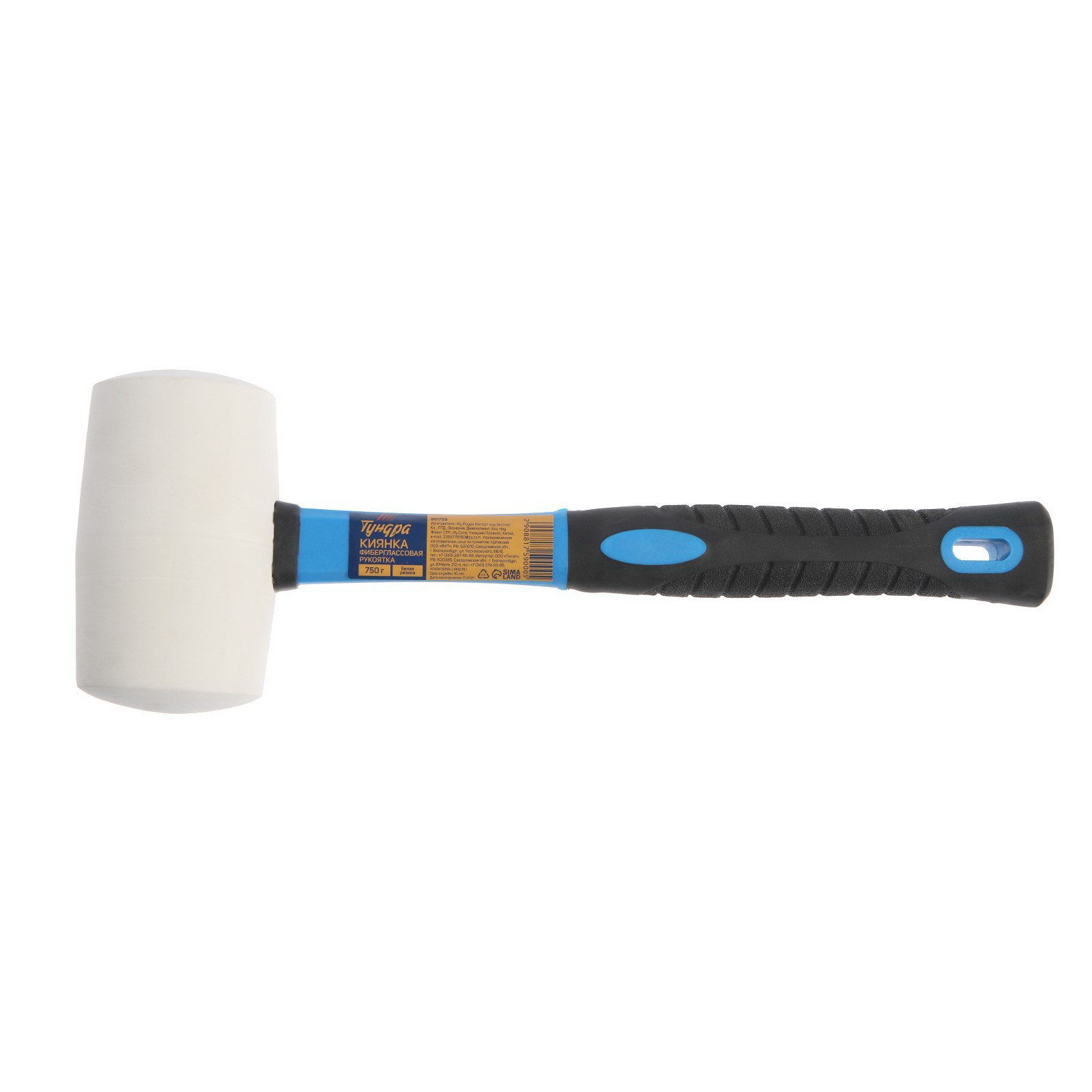 Киянка фиберглассовая рукоятка, белая резина, 750 г, 10.5x35x7 см., ТУНДРА, Китай