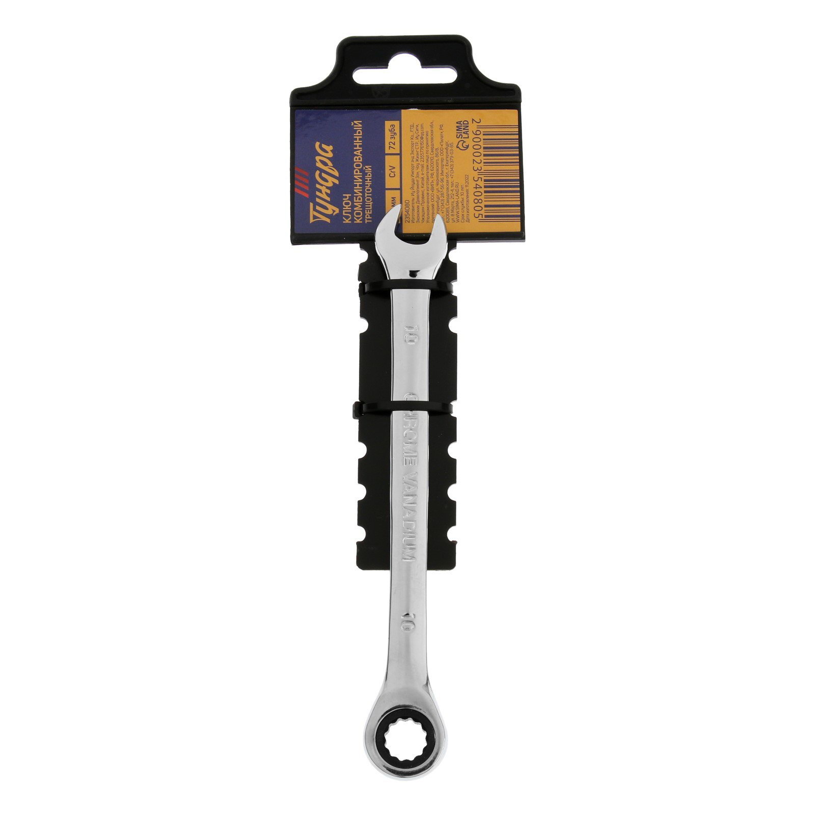 Ключ комбинированный трещоточный CrV, полированный, 72 зуба, 10 мм, ТУНДРА, Китай