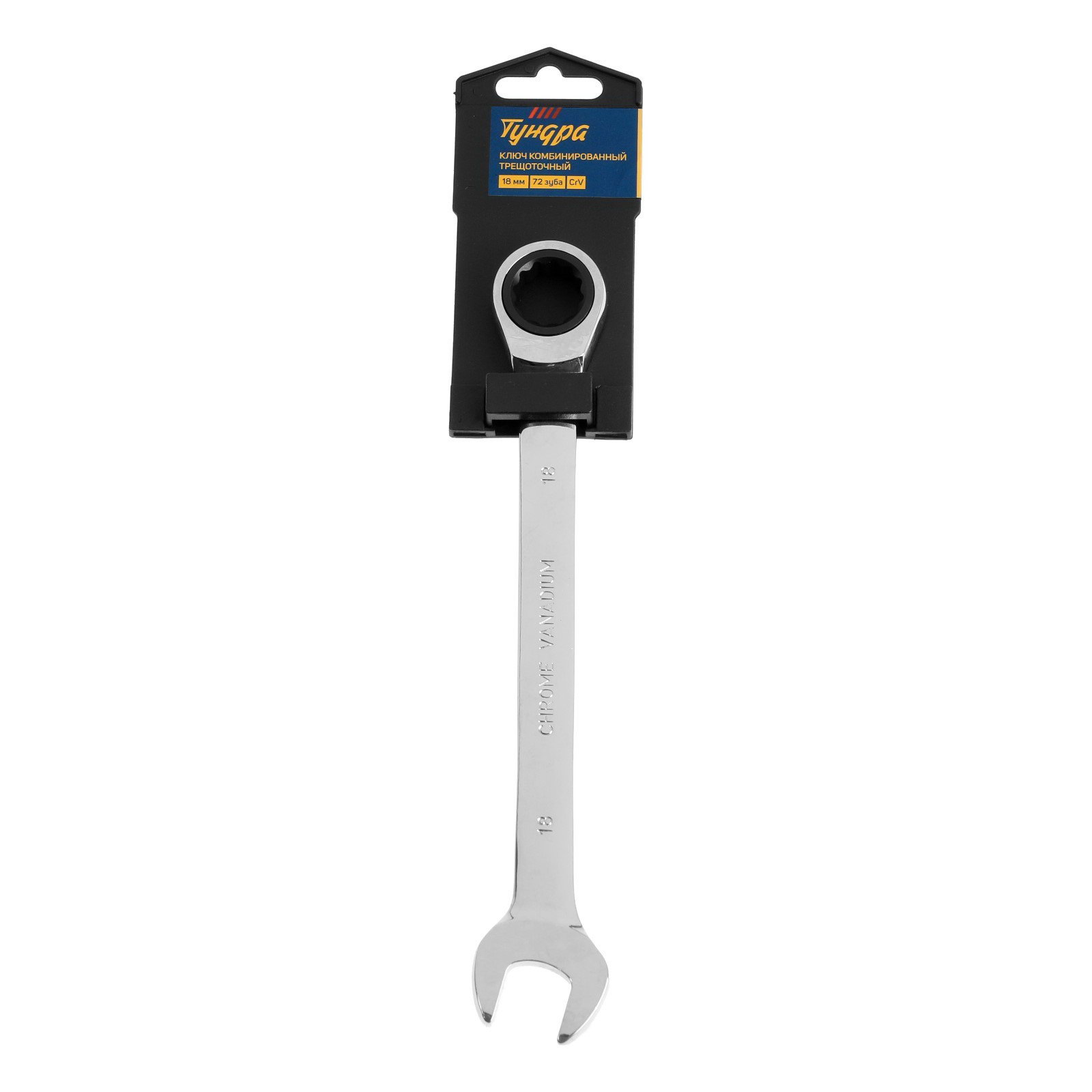 Ключ комбинированный трещоточный CrV, полированный, 72 зуба, 18 мм, ТУНДРА, Китай