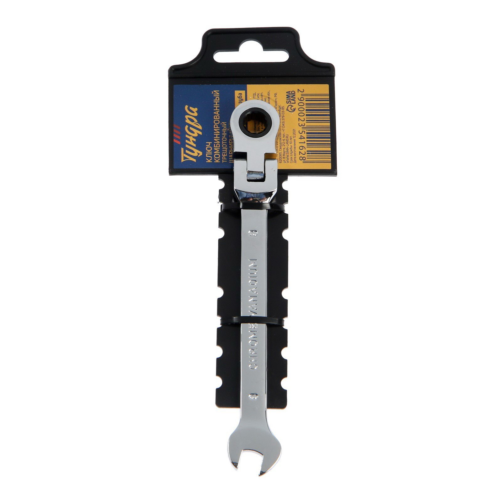 Ключ комбинированный трещоточный шарнирный CrV, полированный, 72 зуба, 8 мм, ТУНДРА, Китай