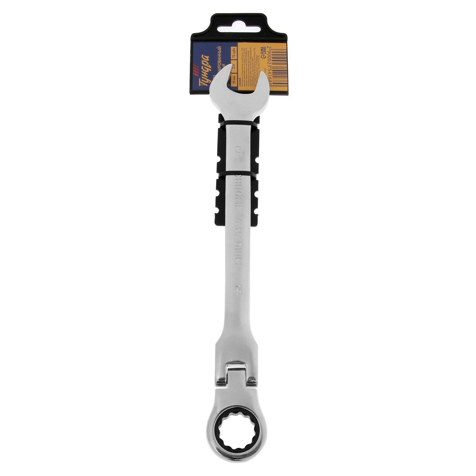 Ключ комбинированный трещоточный шарнирный CrV, полированный, 72 зуба, 19 мм, ТУНДРА, Китай