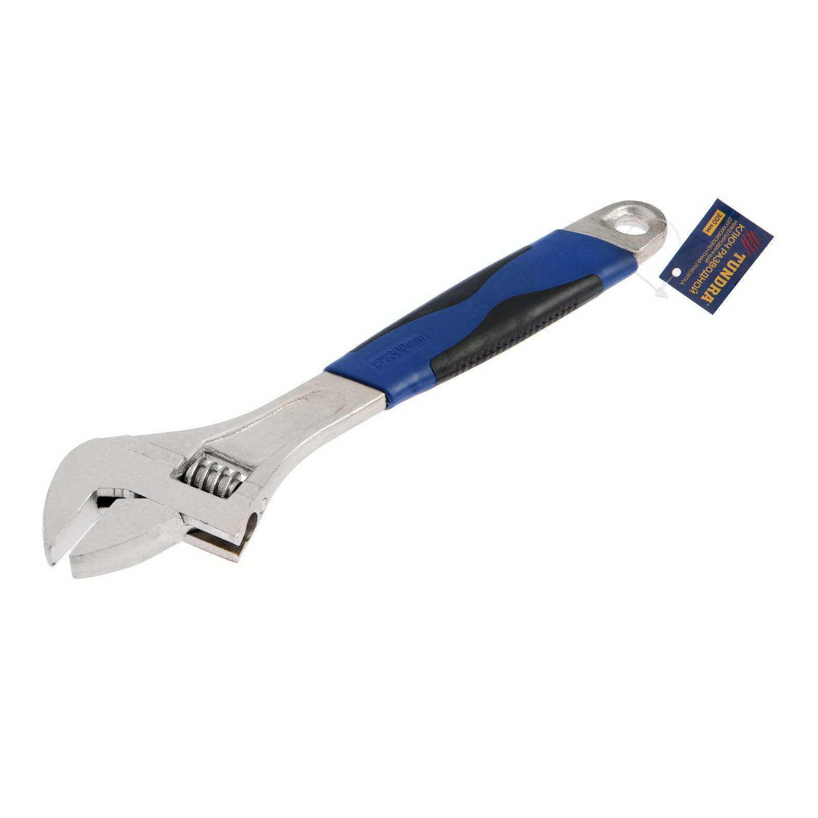 Ключ разводной никелированный, двухкомпонентная рукоятка, 300 мм, 7.5x30x2 см., ТУНДРА, Китай