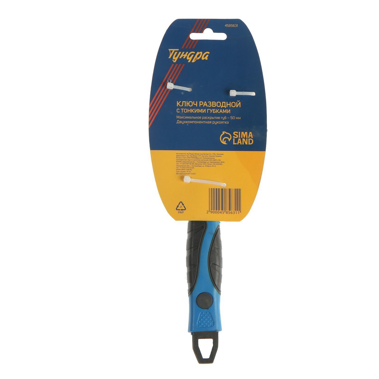 Ключ разводной с тонкими губками 2К рукоятка, раскрытие губок до 50 мм, 250 мм, ТУНДРА, Китай