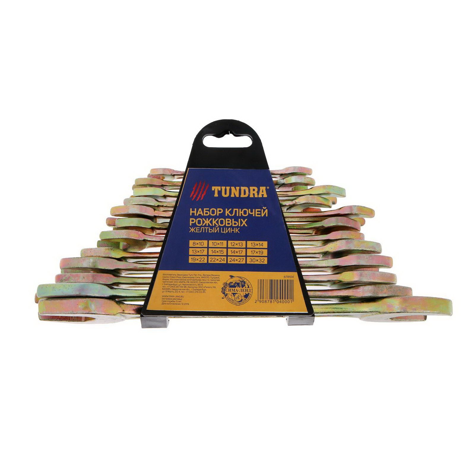Набор ключей рожковых в холдере желтый цинк, 8 - 32 мм, 12 шт., 12x25x6 см., ТУНДРА, Индия