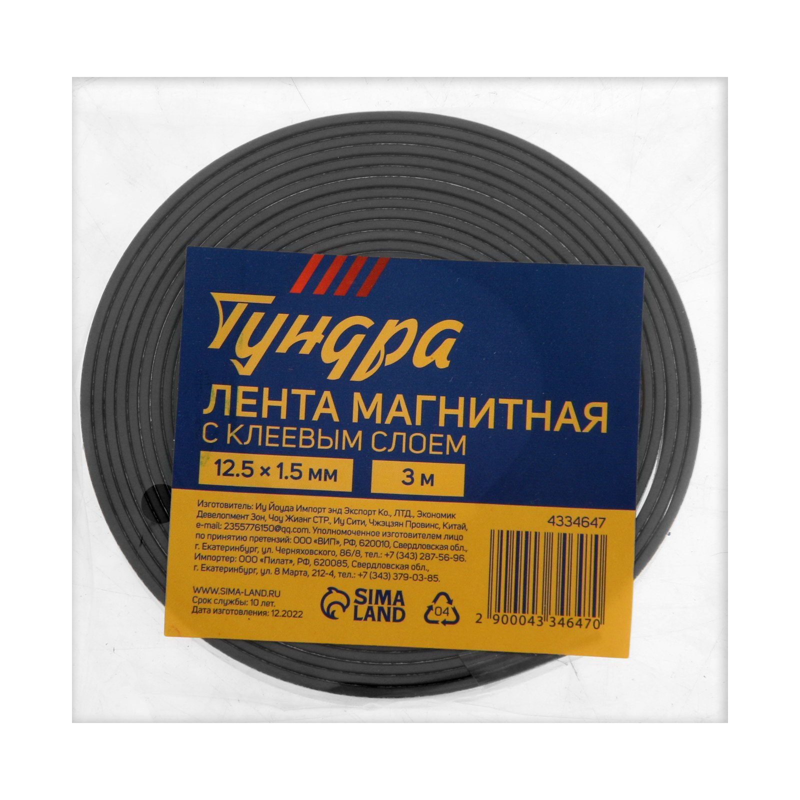 Магнитная лента с клеевым слоем, 12.5x1.5 мм, длина 3 м, ТУНДРА, Китай