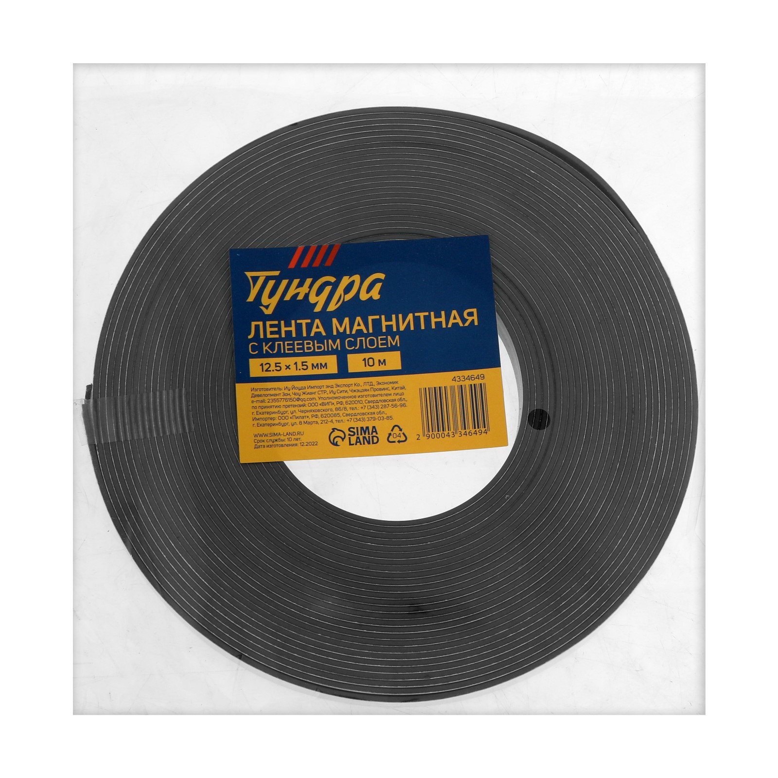 Магнитная лента с клеевым слоем, 12.5x1.5 мм, длина 10 м, ТУНДРА, Китай