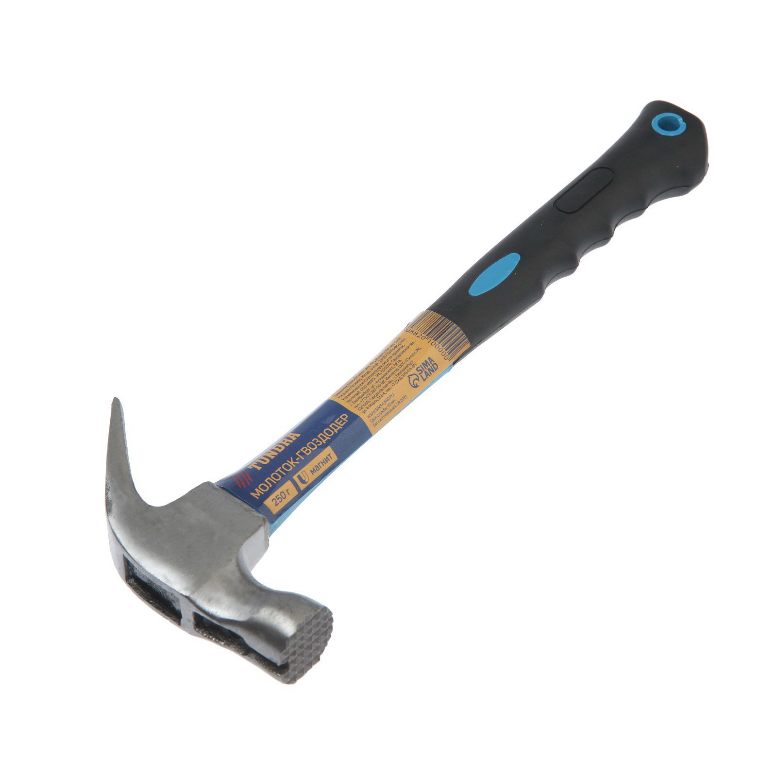 Молоток-гвоздодер боек с магнитом, фиберглассовая 2К рукоятка, 250 г, ТУНДРА, Китай