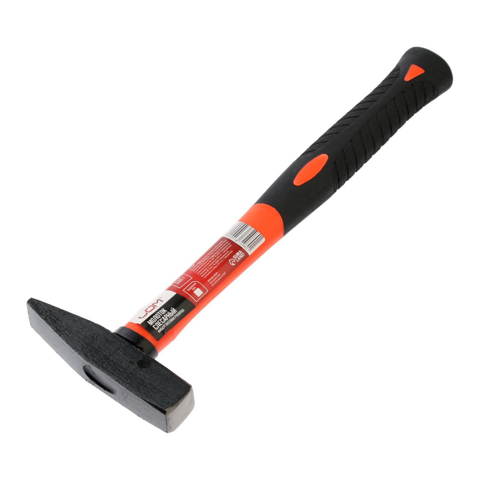 Молоток слесарный квадратный боек, фиберглассовая обрезиненная рукоятка, 500 г, ЛОМ, Китай