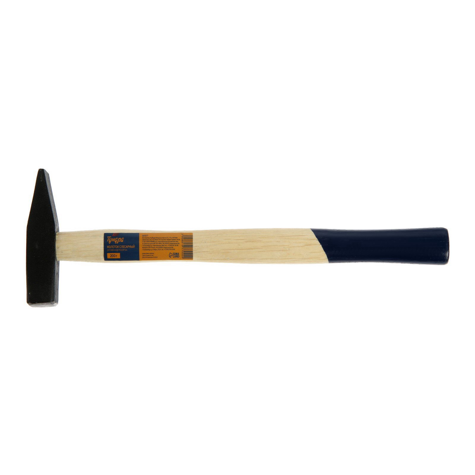 Молоток слесарный квадратный боек, деревянная рукоятка, 200 г, ТУНДРА, Китай